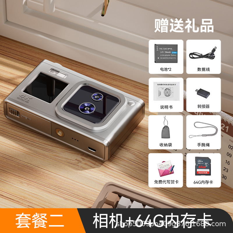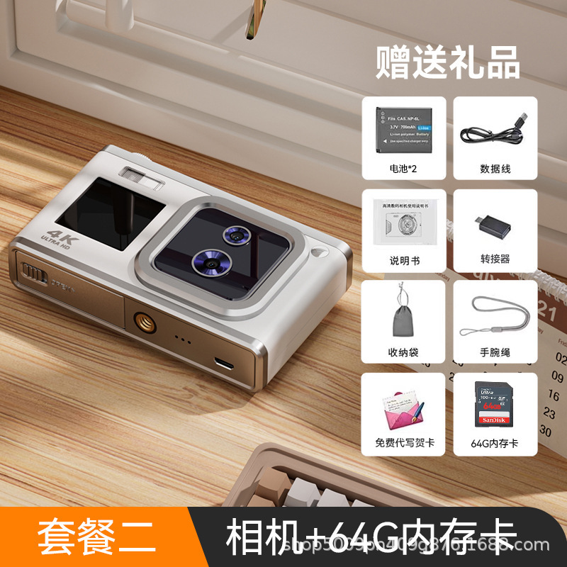 접이식 듀얼 렌즈 4K 고화질 픽셀 디지털 CCD 카메라 캠퍼스 미니 폴라로이드 학생 파티 휴대용
