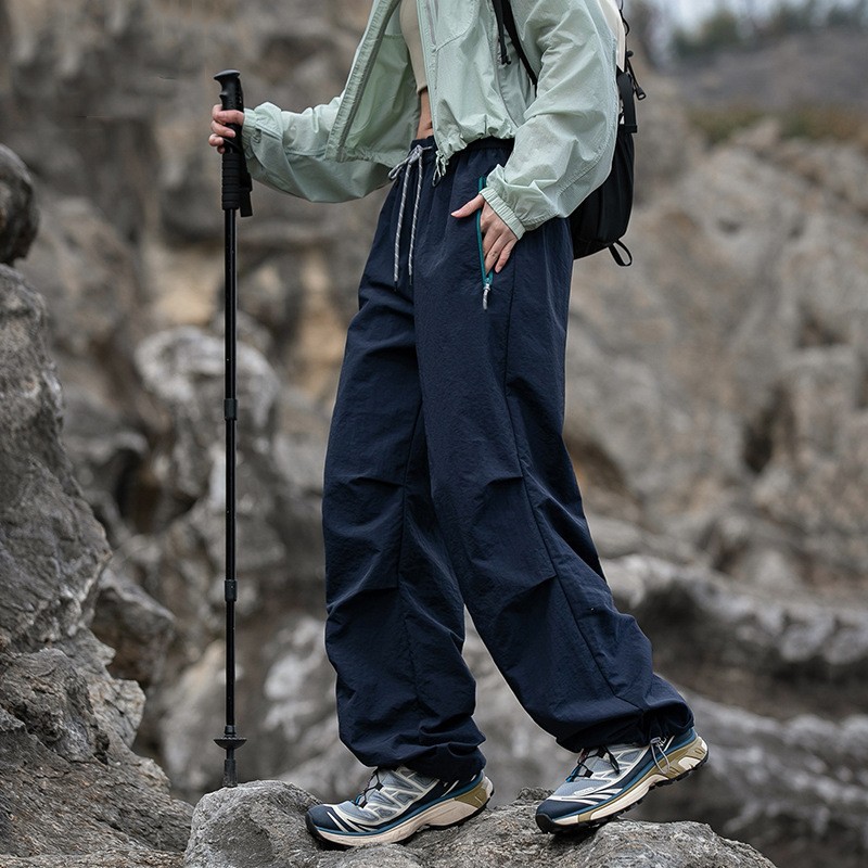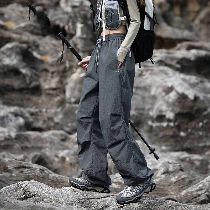 여름용 여성용 대형 브랜드 보라색 아웃도어 등산 바지, 하이킹, 스포츠, 암벽 등반 바지, 낙하산부용 속건 작업복 바지스토어 가기