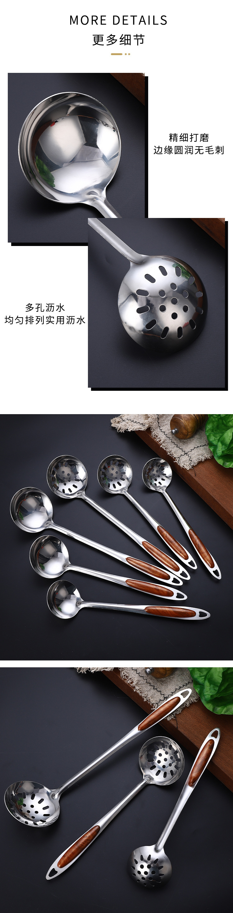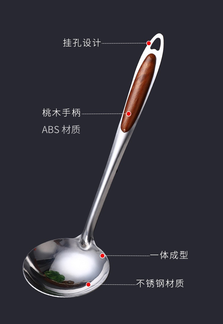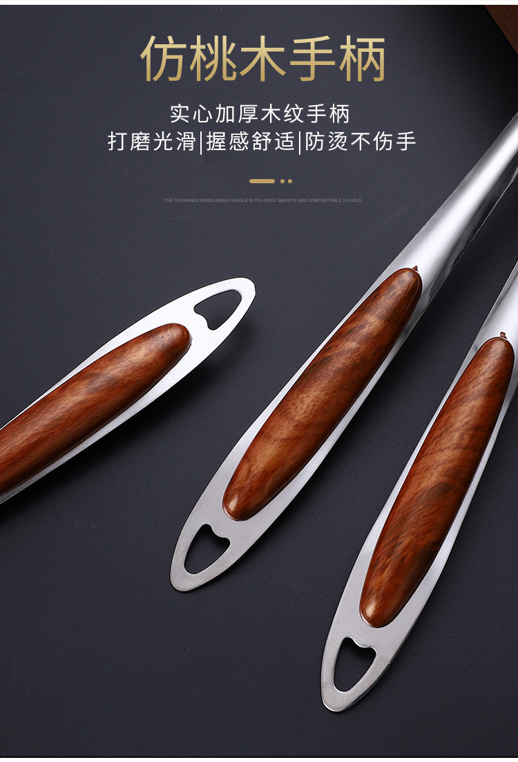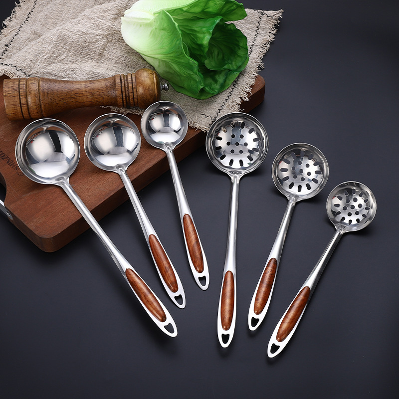 두꺼운 골드 피치 우드 스테인레스 스틸 수프 스푼, 죽 스푼, 냄비 스푼, 소쿠리, 주방 용품 스푼, 가정용 주방