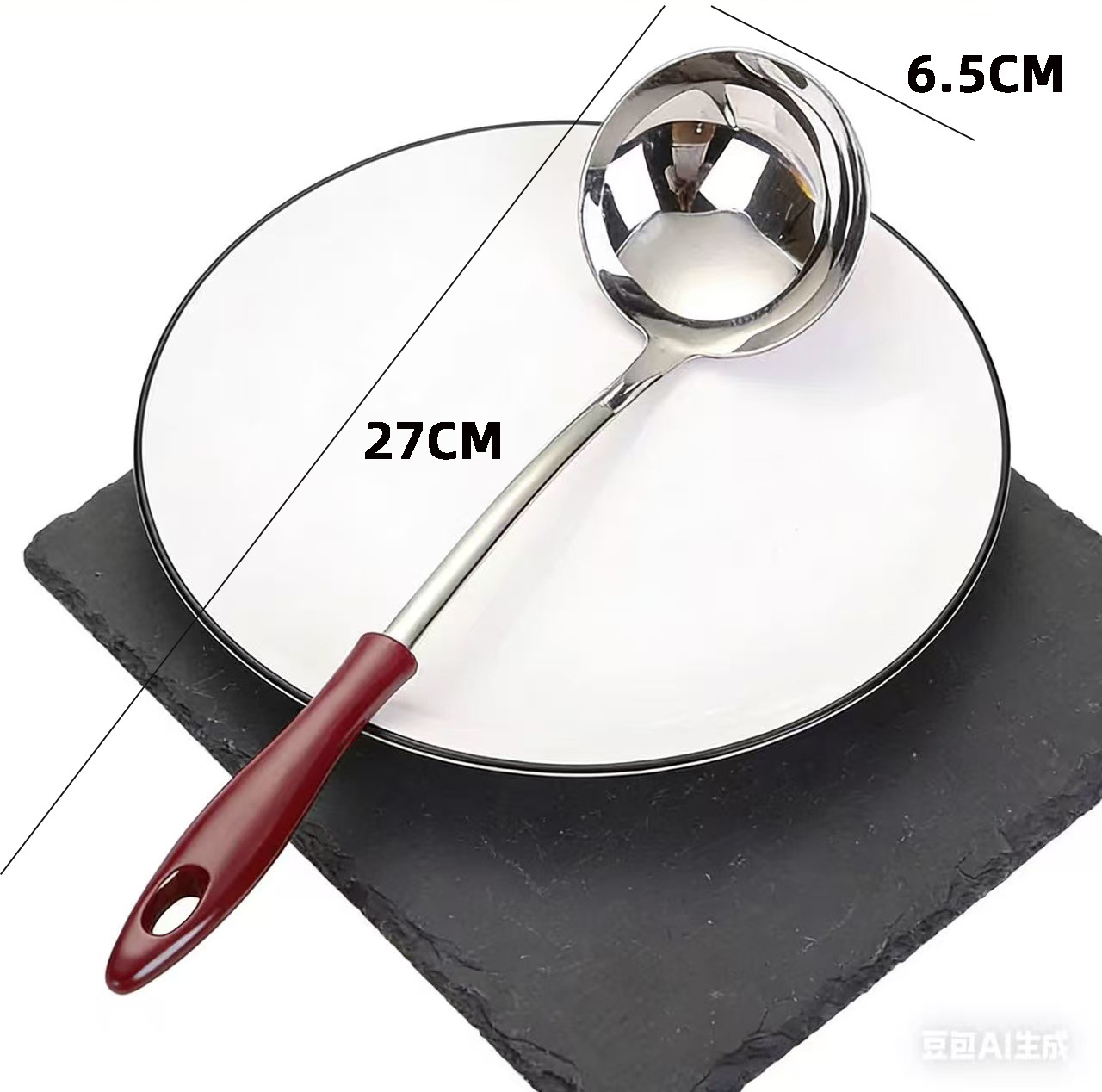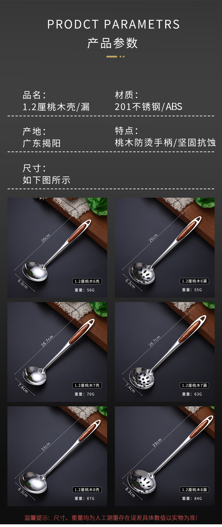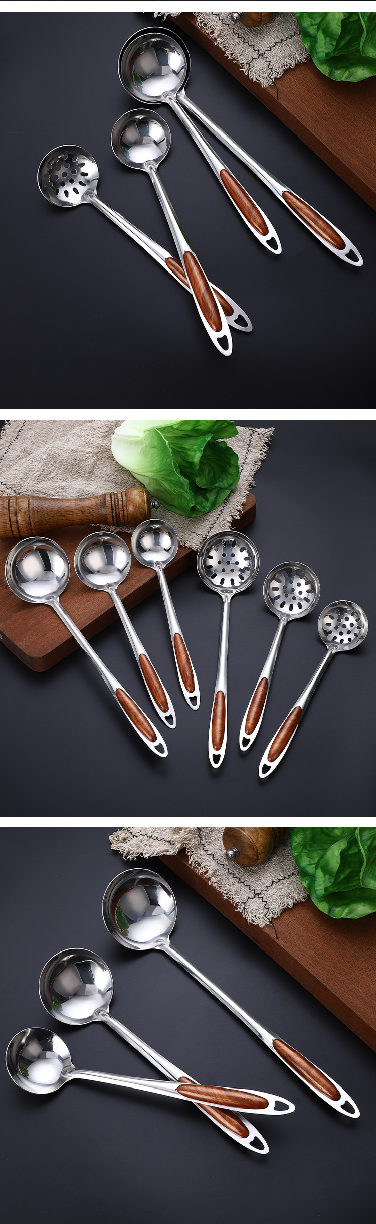 두꺼운 골드 피치 우드 스테인레스 스틸 수프 스푼, 죽 스푼, 냄비 스푼, 소쿠리, 주방 용품 스푼, 가정용 주방