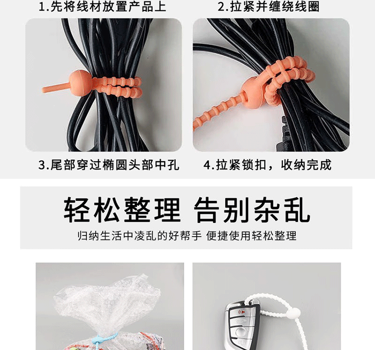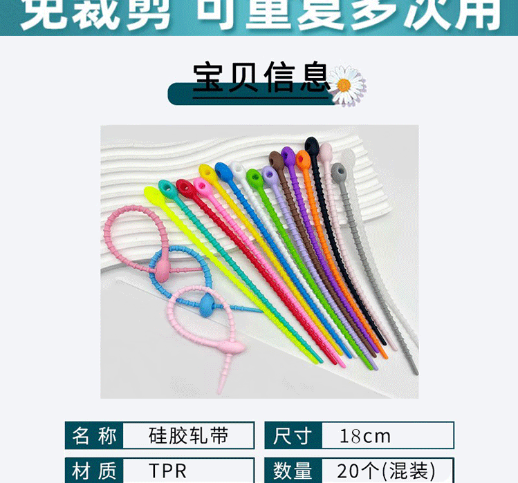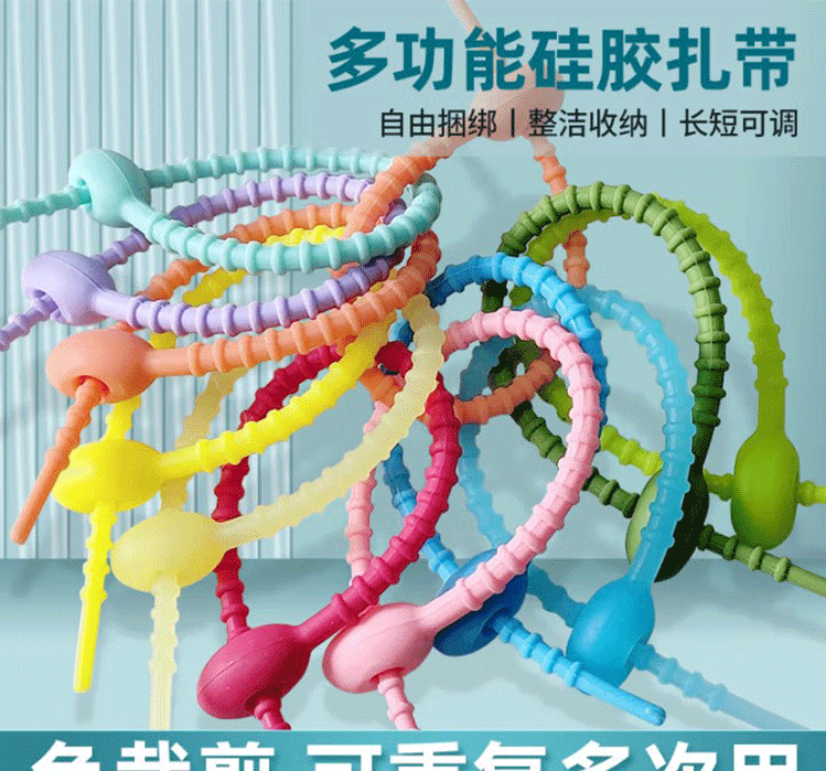 재사용 가능한 DIY 수제 실리콘 케이블 타이 쥬얼리 액세서리 인형 키 체인 끈 보관 와인더