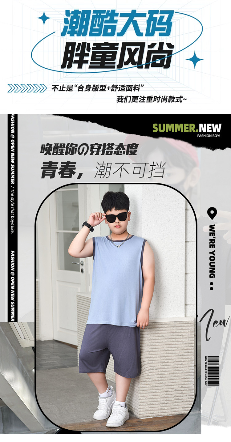 뚱뚱한 소년 모달 겉옷, 중대형 아동복, 잠옷, 뚱뚱하고 얇은 얼음 실크 여름 조끼 민소매 조끼스토어 가기