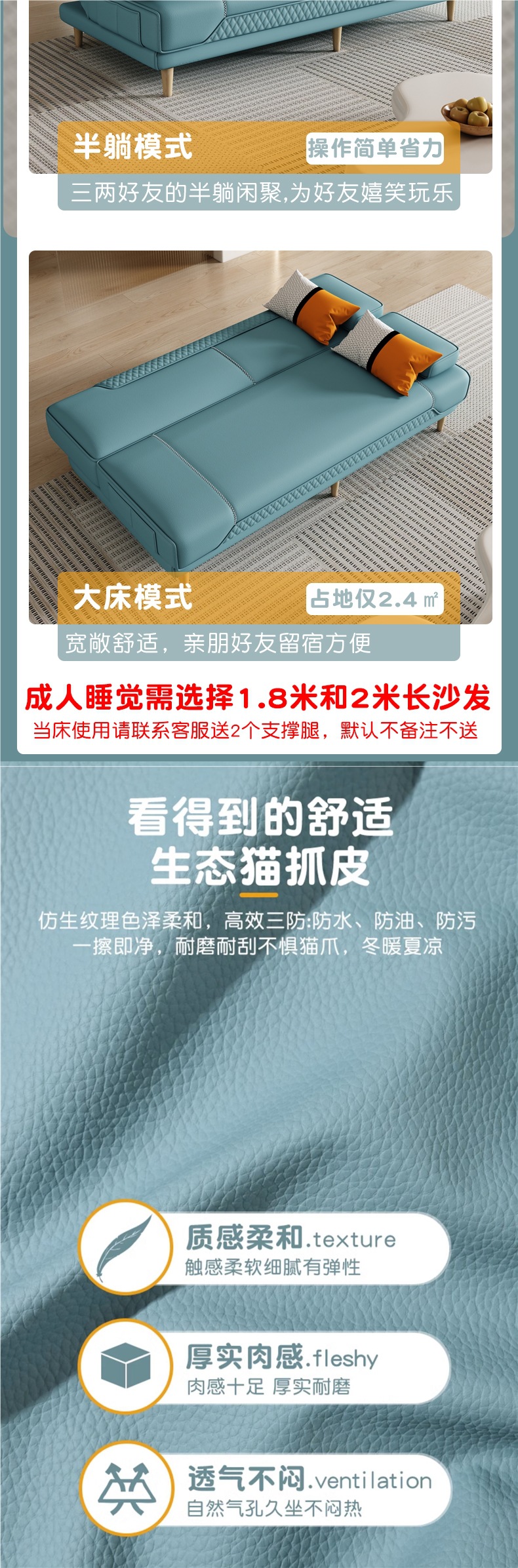 다기능 접이식 소파 베드, 이중 목적, 소형 아파트, 간단한 고양이 스크래치 가죽, 가정용 거실, 아파트, 게으른 사람들은 누워서 자고 있습니다.스토어 가기