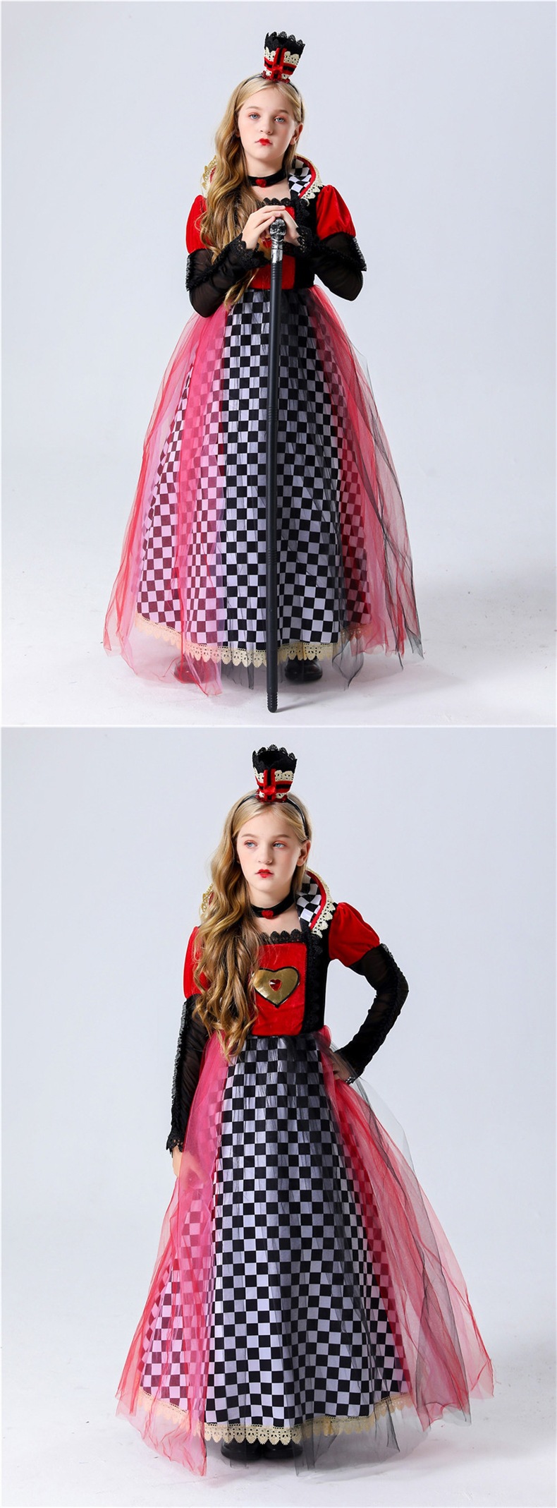 할로윈 의상 코스프레 복숭아 하트 빨간 여왕 공주 드레스 어린이 날 공연 의상 럭셔리 여왕 드레스