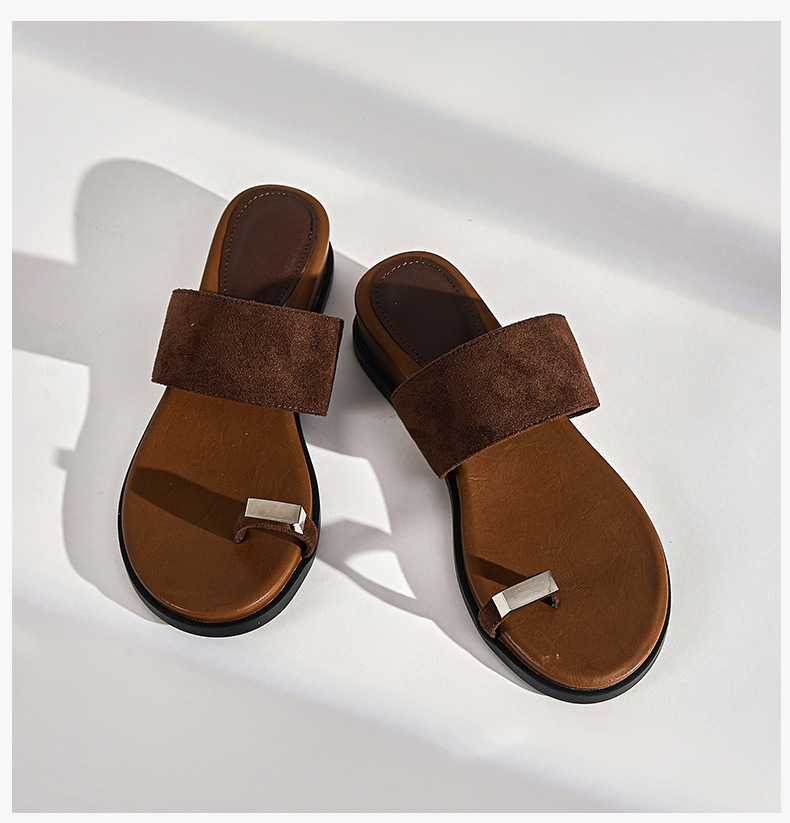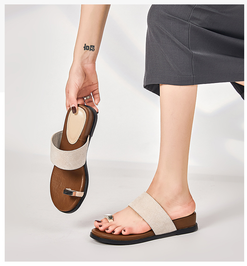 1층 양가죽 깔창, 외부 클립온 샌들, 2025 여름 신상 플랫 슬리퍼, 여성용 비치 하프 슬리퍼