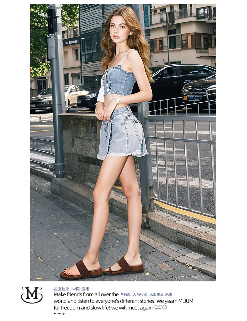 1층 양가죽 깔창, 외부 클립온 샌들, 2025 여름 신상 플랫 슬리퍼, 여성용 비치 하프 슬리퍼스토어 가기