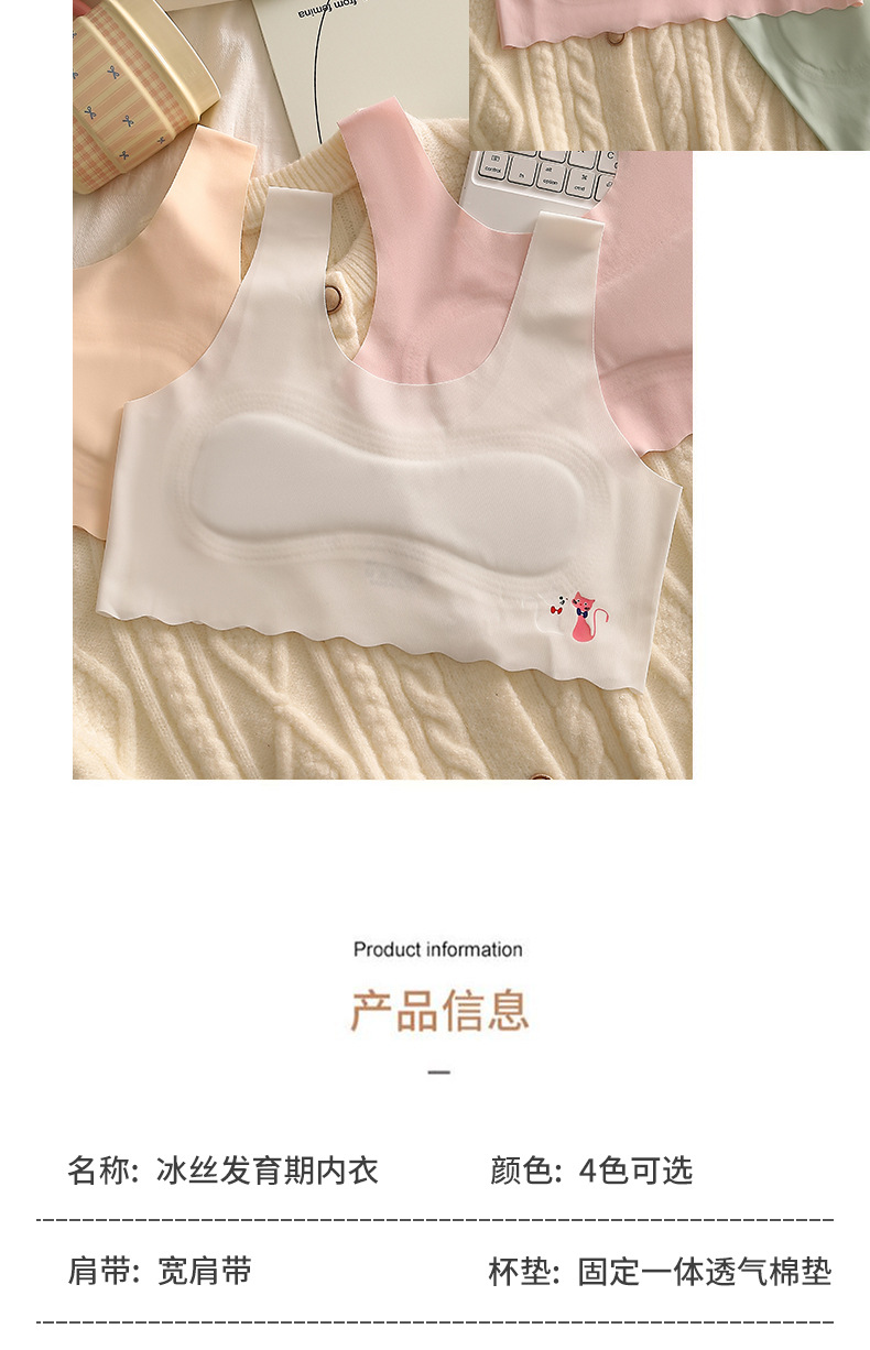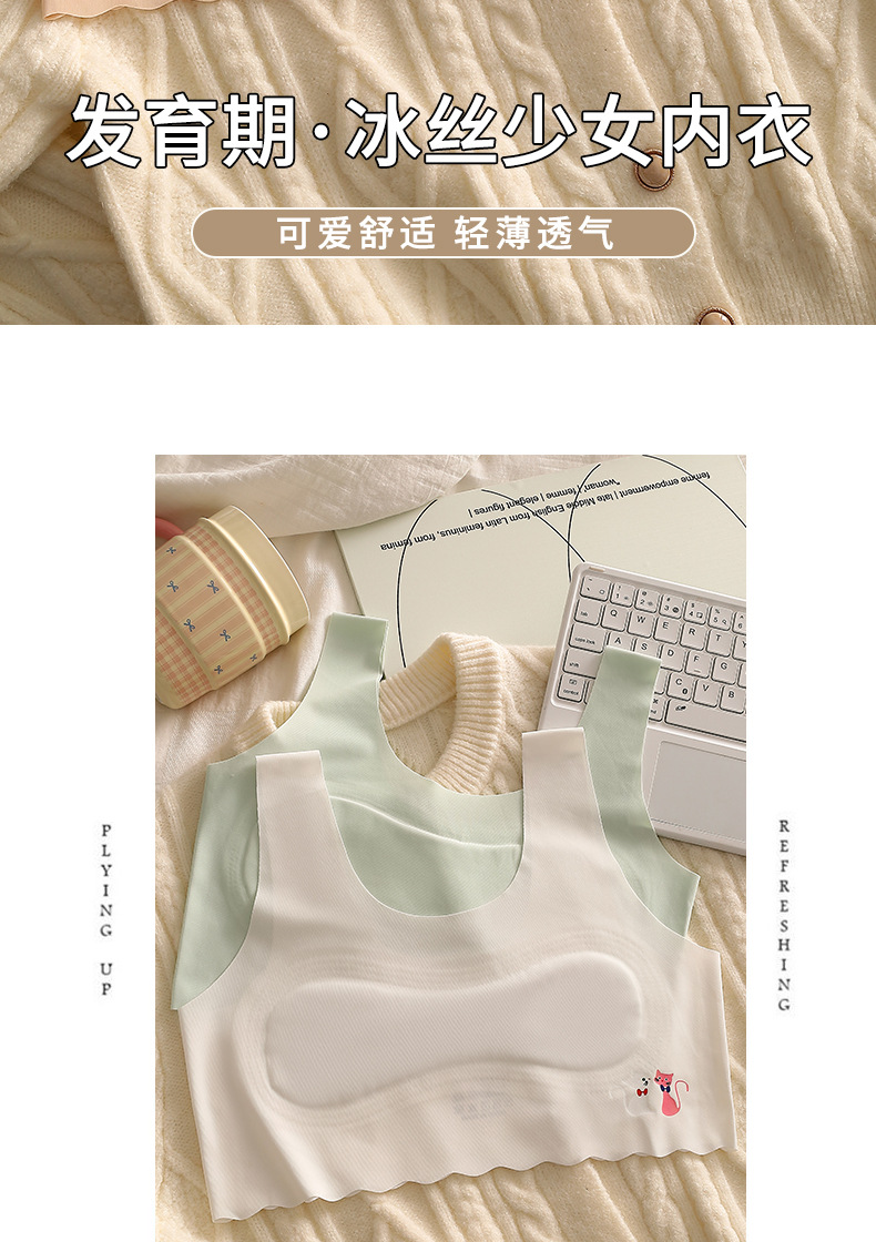 여아 속옷, 초등학생, 아이스 실크, 무봉제, 중학생, 여아 브라, 아동 조끼, 얇은 튜브탑스토어 가기