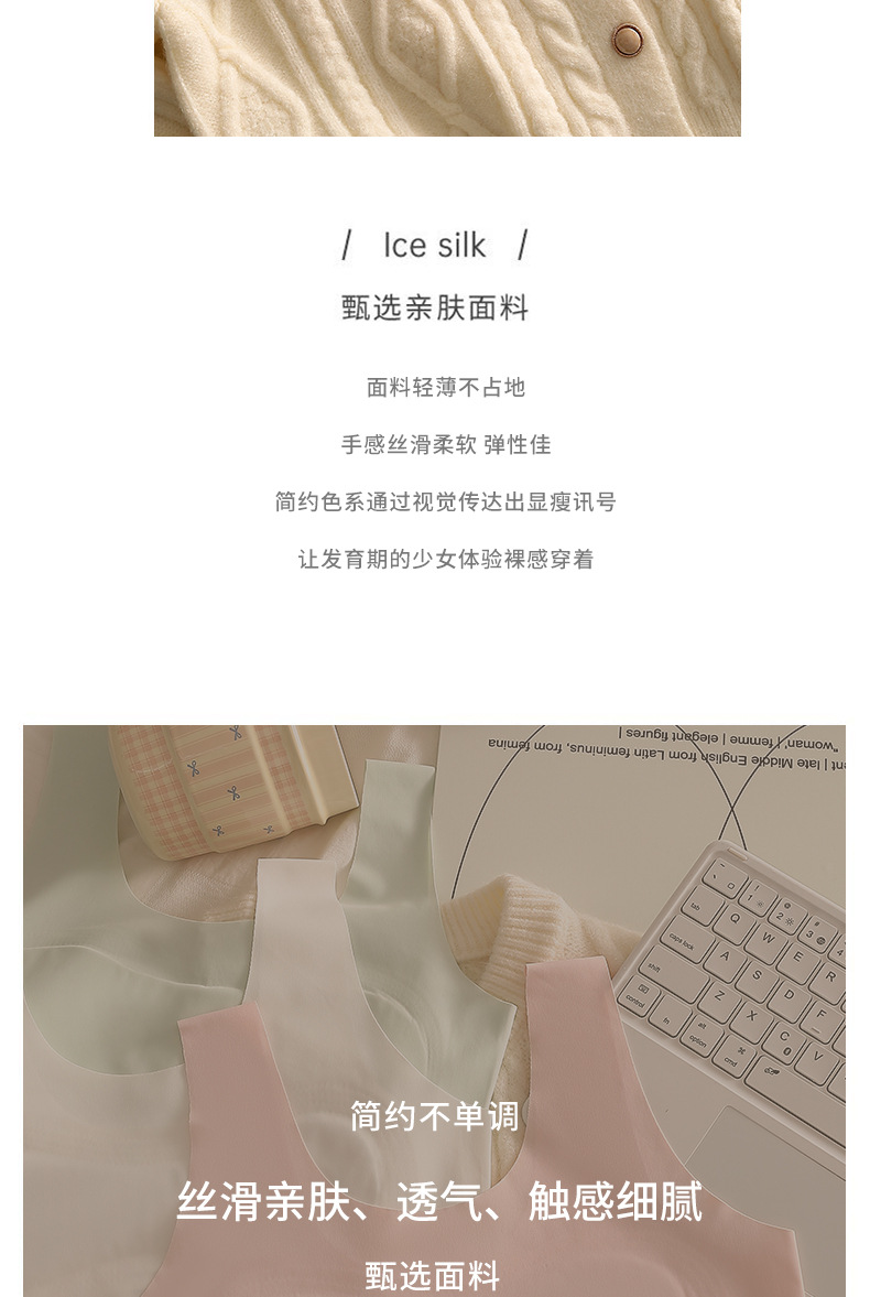 여아 속옷, 초등학생, 아이스 실크, 무봉제, 중학생, 여아 브라, 아동 조끼, 얇은 튜브탑