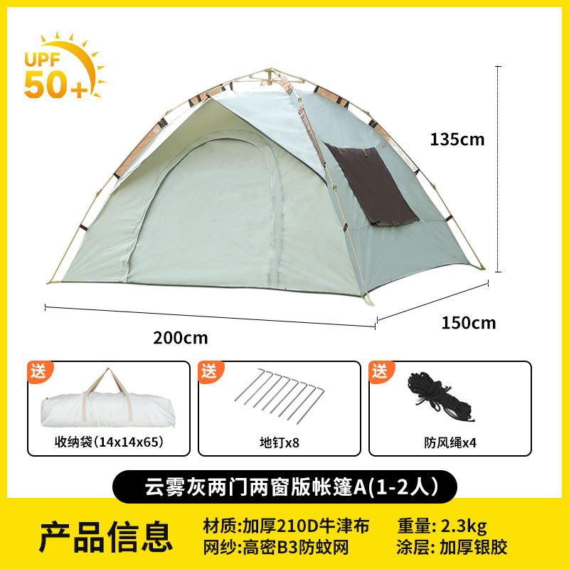 • 두꺼운 은색 접착제 [구름 회색 2도어 창문 없음 + 방수 지붕] 1-2인