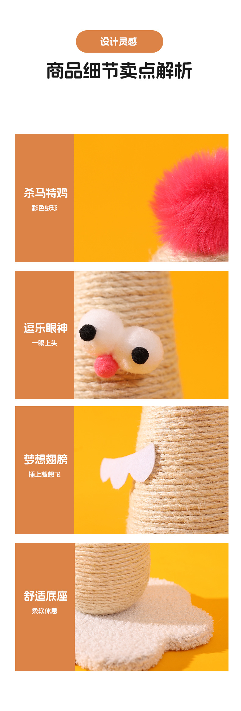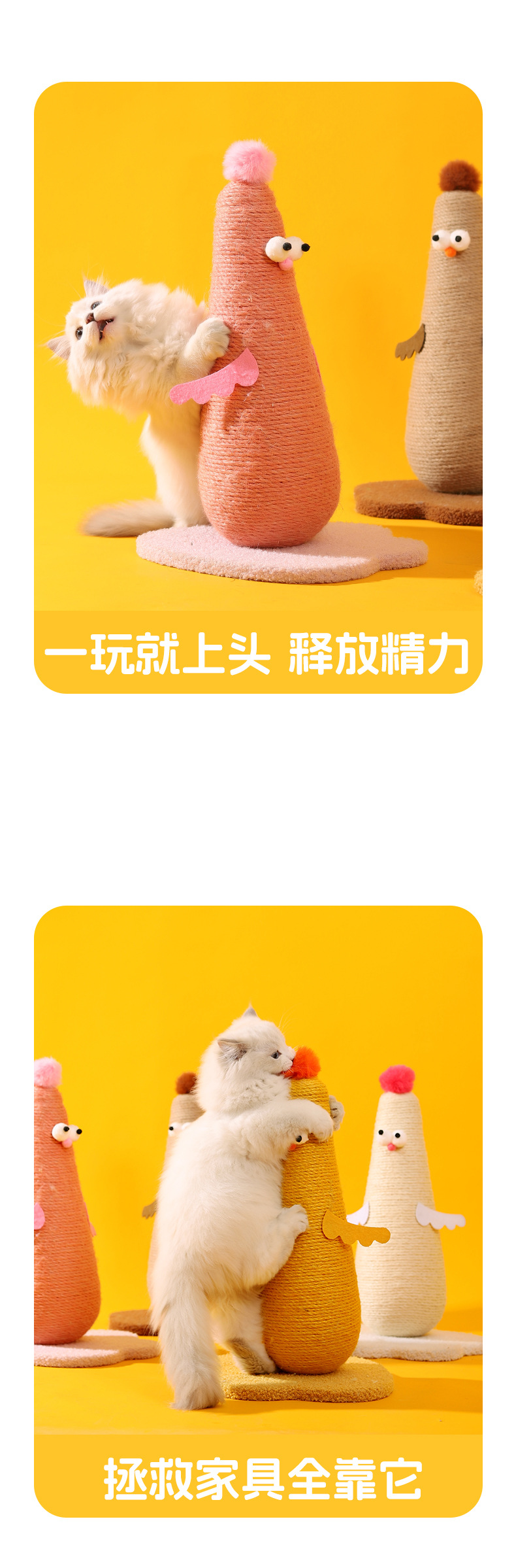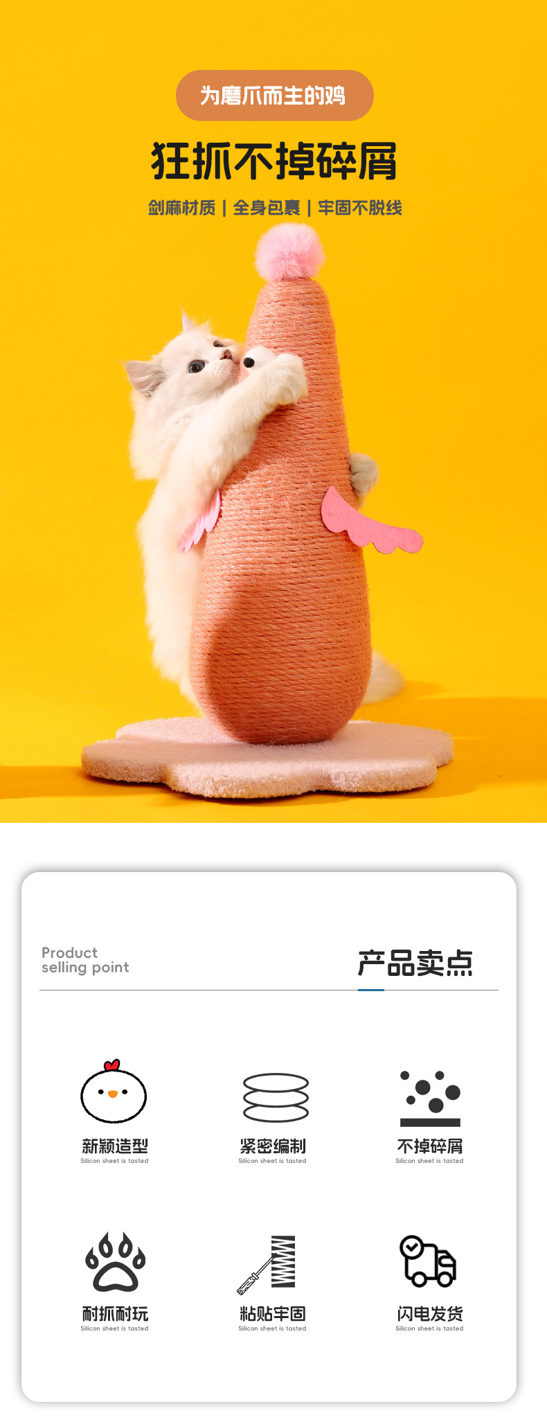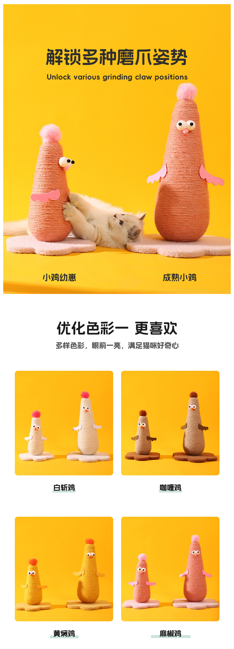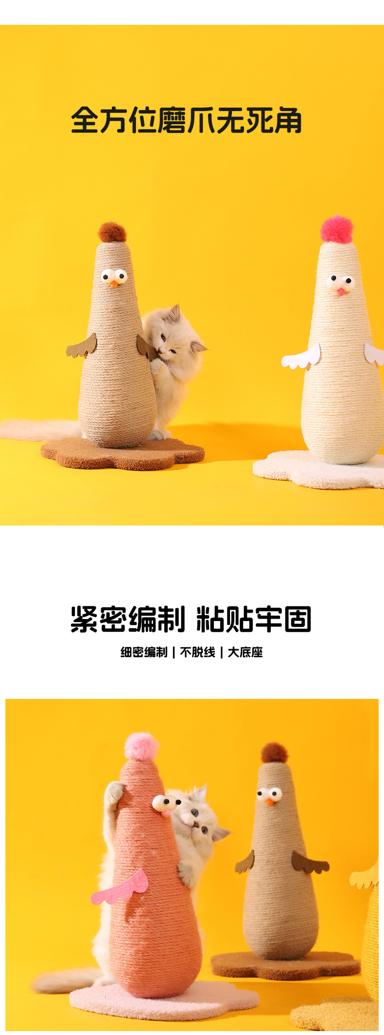 ✅ 새로운 디자인의 흘러내림 없는 고양이 스크래쳐, 귀여운 닭 모양의 스크래쳐, 사이잘볼이 있는 튼튼한 고양이 클라이밍 프레임, 애완동물 장난감 도매스토어 가기