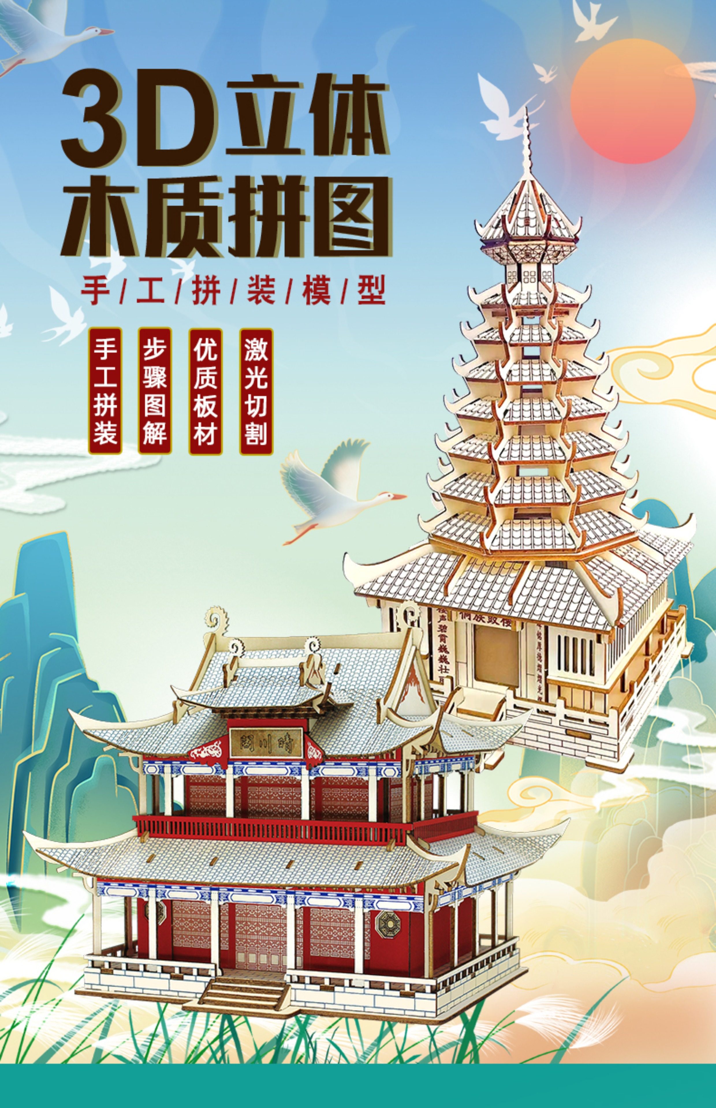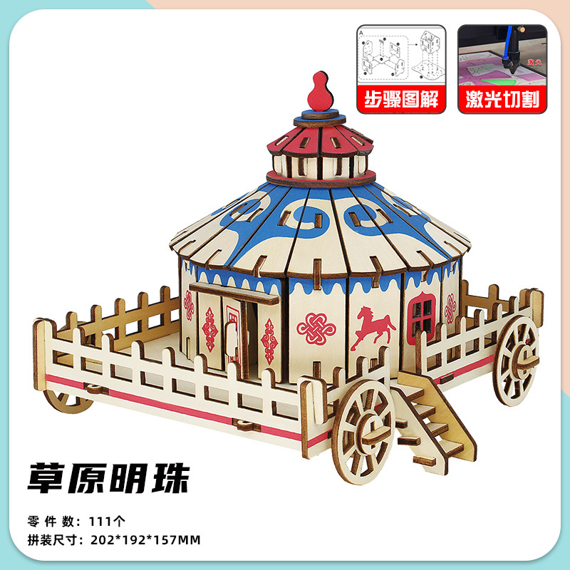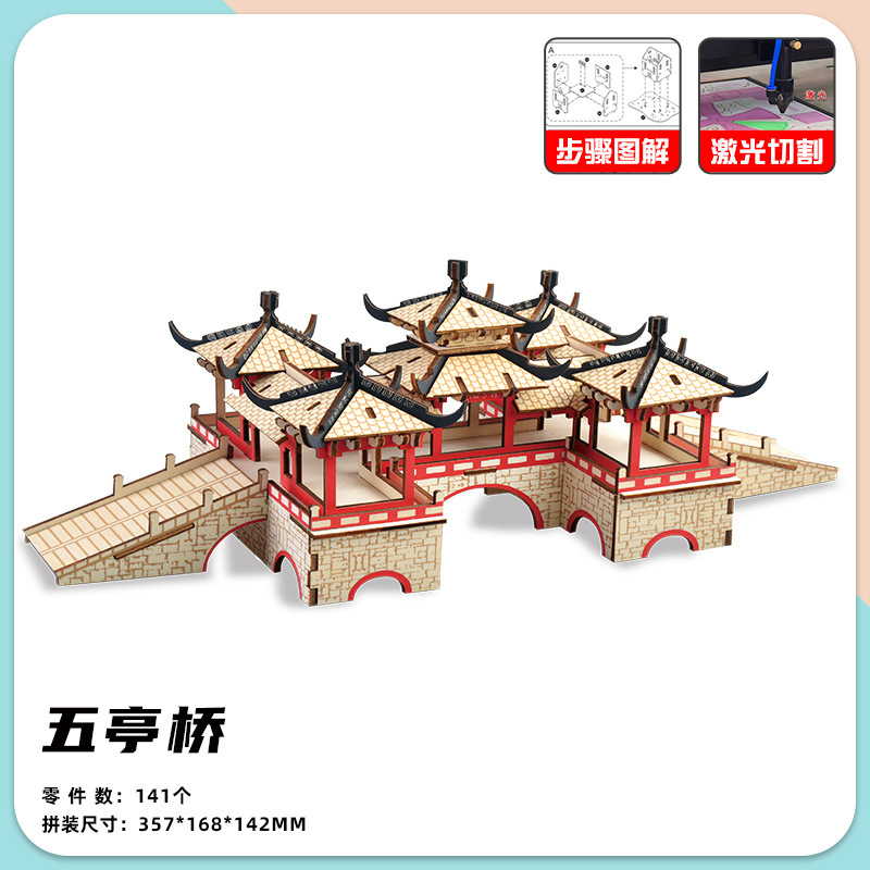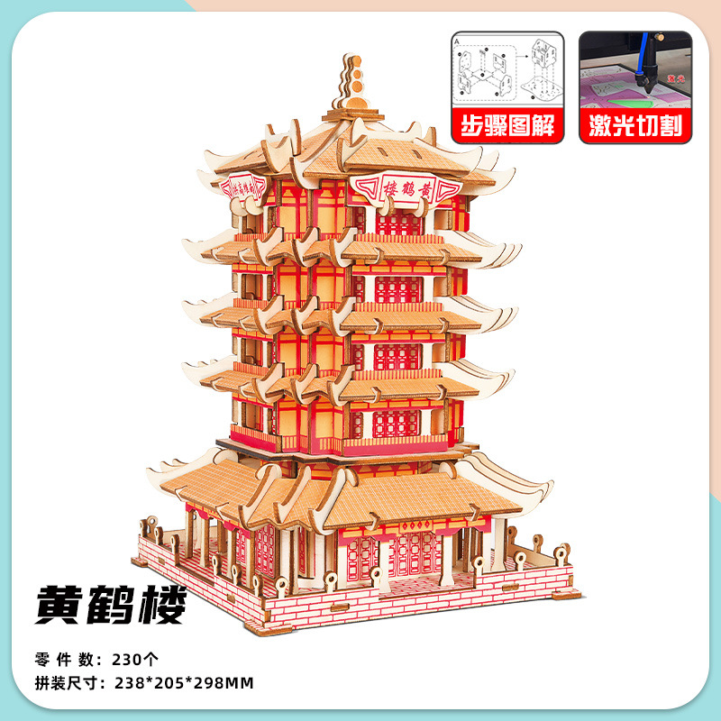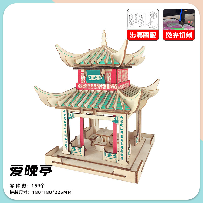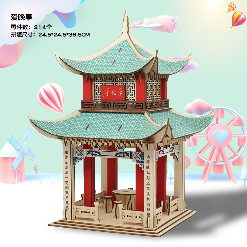 3 차원 퍼즐 골동품 3D 모델 건물 조립 나무 어린이 교육 집 장난감 소년과 소녀 빌딩 블록 성인스토어 가기