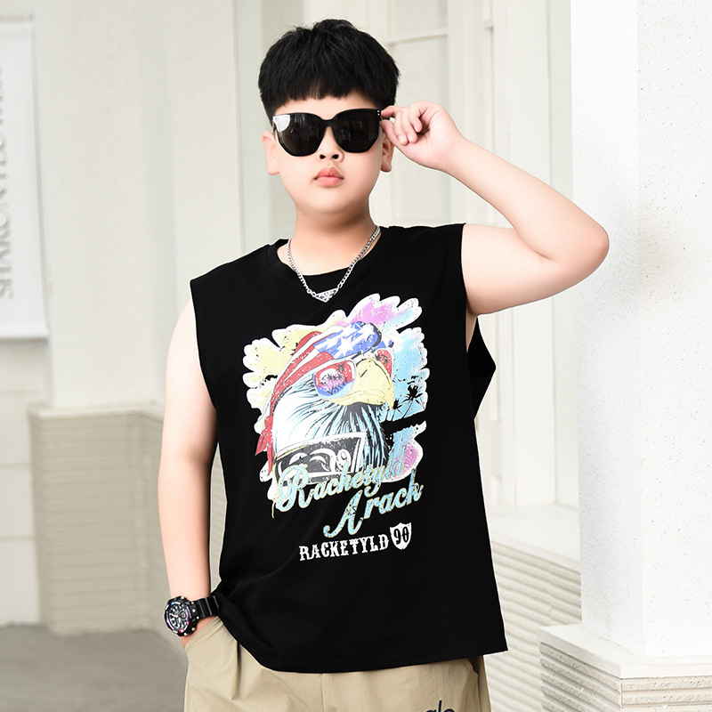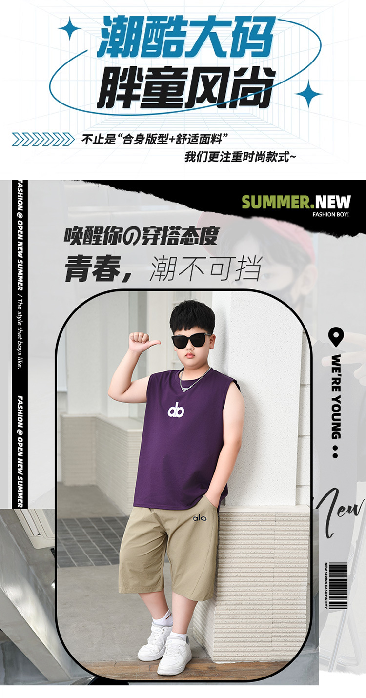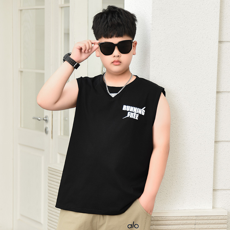 뚱뚱한 소년 스포츠 면 조끼 얇은 중형 및 대형 어린이 통기성 여름 옷 느슨한 대형 탑 어린이 기본 레이어 민소매 t스토어 가기