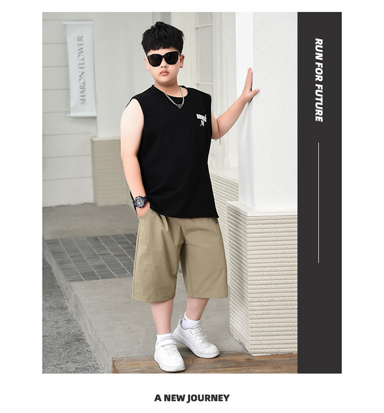 뚱뚱한 소년 스포츠 면 조끼 얇은 중형 및 대형 어린이 통기성 여름 옷 느슨한 대형 탑 어린이 기본 레이어 민소매 t