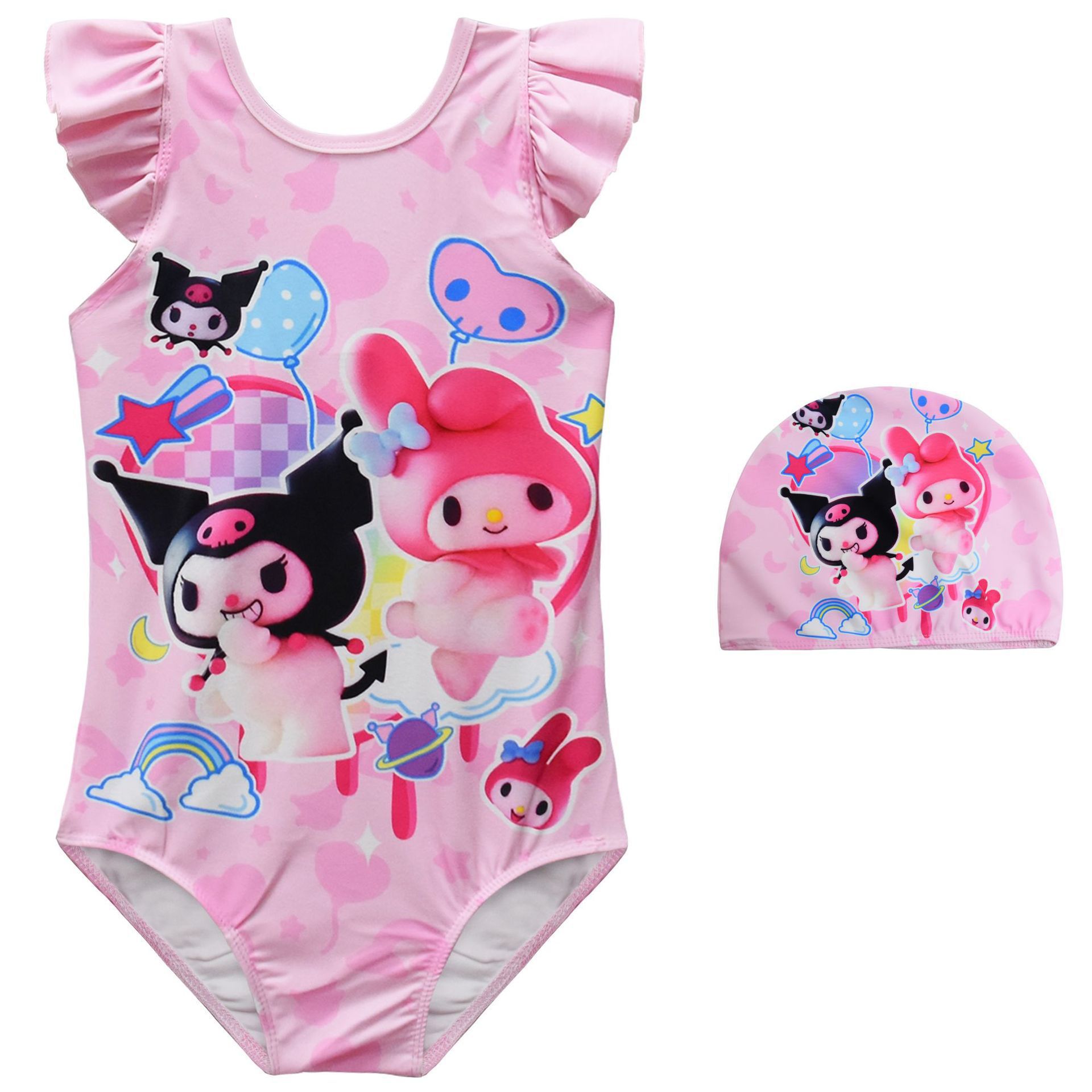 新款跨境库洛米美乐蒂女童背带蝴蝶结温泉沙滩连体游泳衣56049