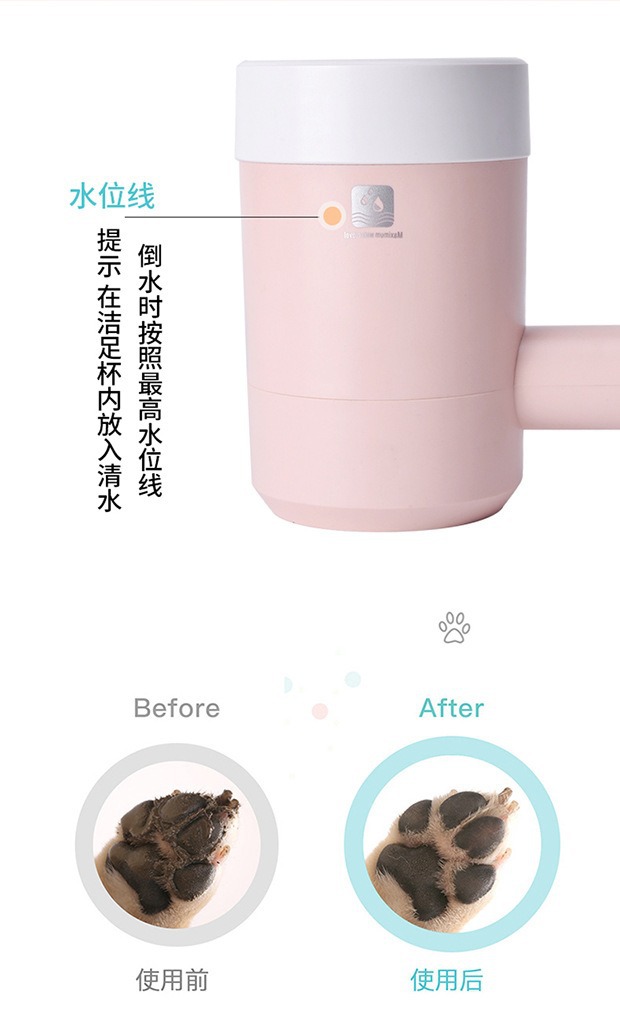 강아지와 고양이의 발을 깨끗하게 하고 아름답게 해주는 애완동물 발 세척 컵을 눌러서 외출시 발을 씻을 수 있습니다.