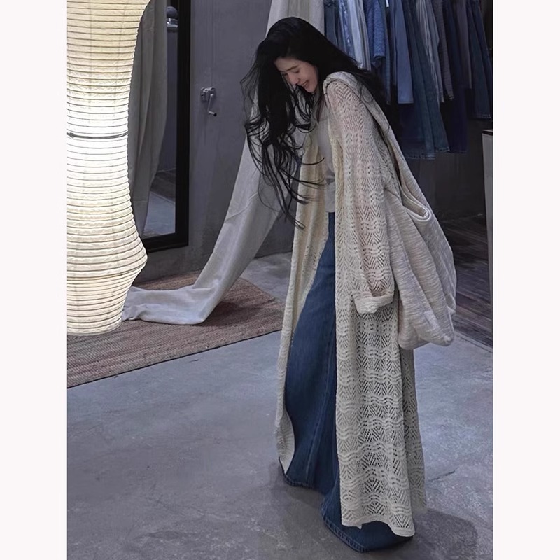 디자인 코트 모직 보헤미안 메쉬 중공 자외선 차단제 얇은 여성용 게으른 스타일 니트 가디건스토어 가기