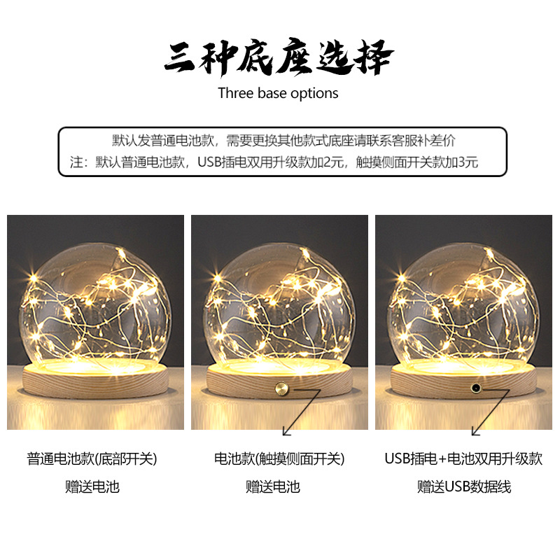 ♔ 제조업체 원통형 구형 성게 야간 조명 영원히 보존된 말린 꽃 투명 유리 커버 USB 베이스 스트링 라이트 펜던트 포함