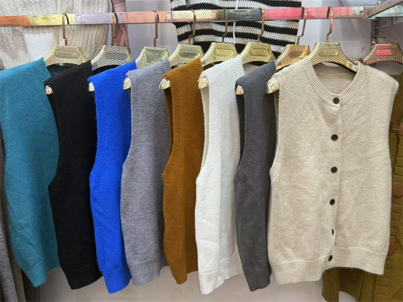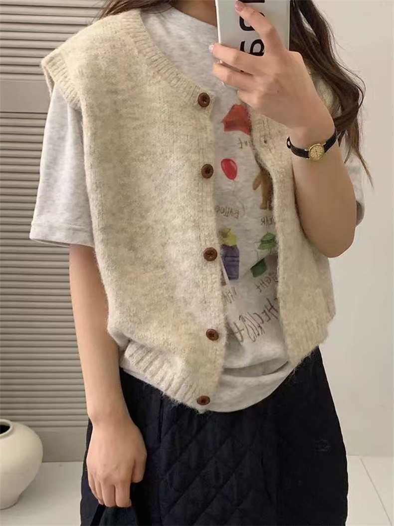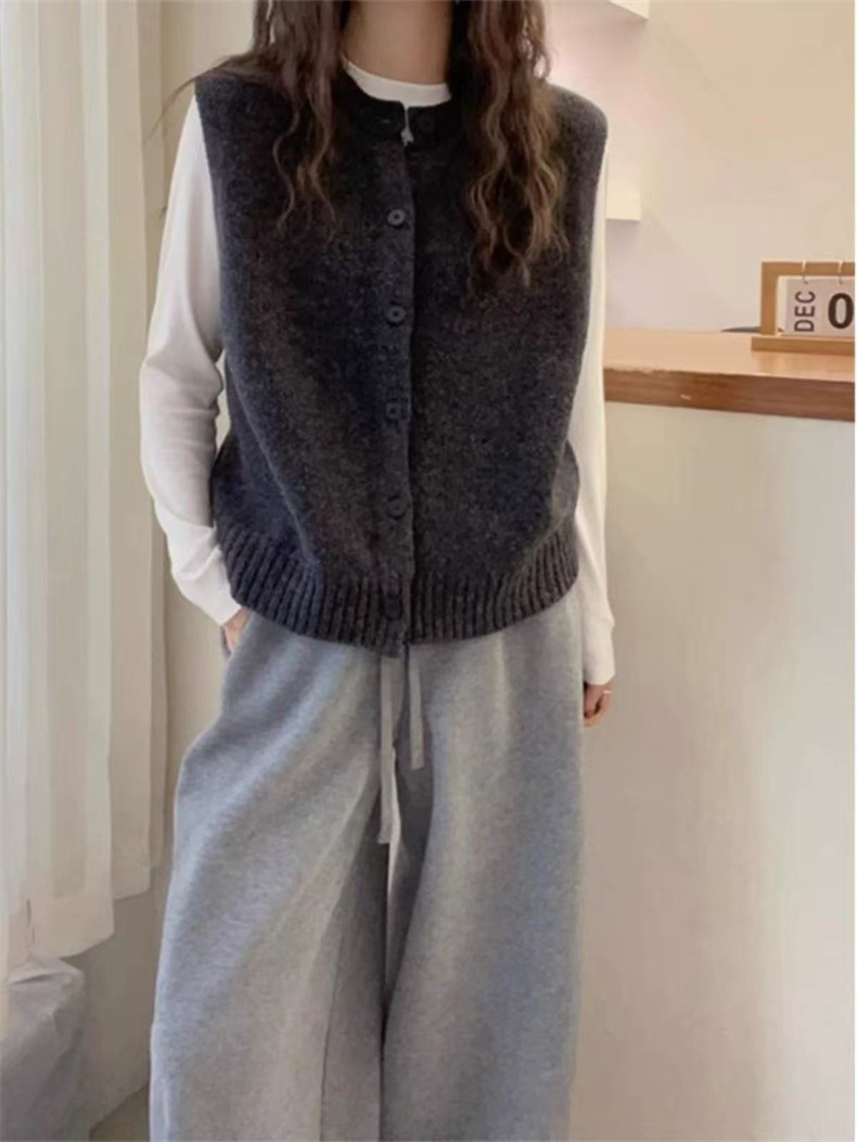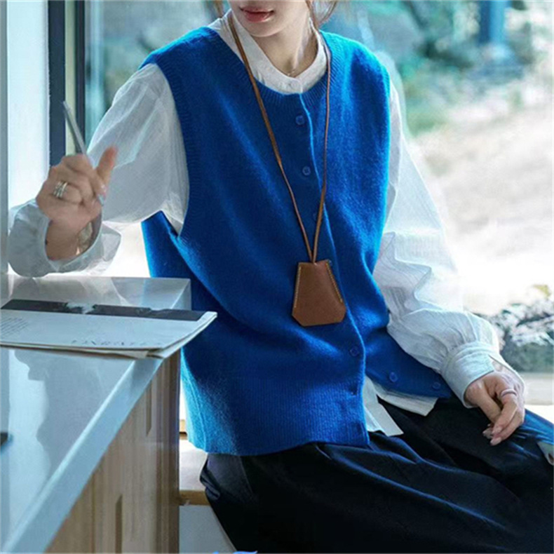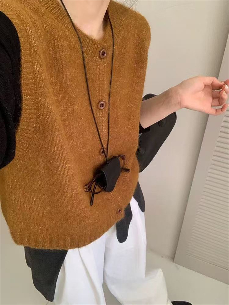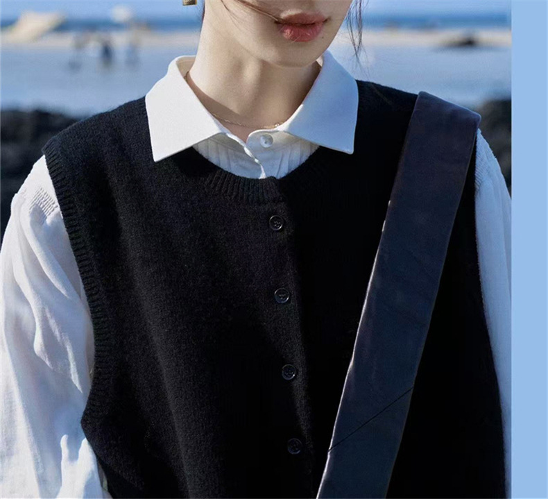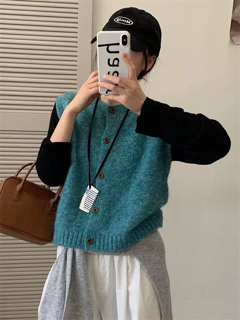 2025 새로운 가을 라운드 넥 민소매 레이어드 스웨터 조끼 복고풍 단순 짧은 스웨터 여성상의스토어 가기