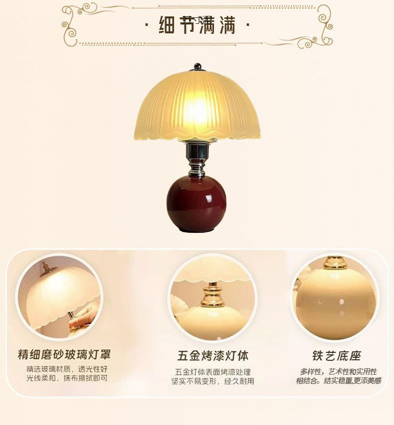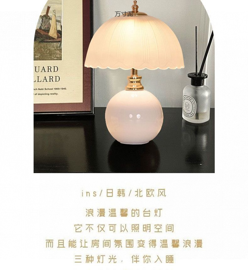 크림 스타일 복고풍 테이블 램프 스타일 고가치 침실 2025 침대 옆 테이블 마스터 침실 버섯 분위기 야간 조명 공장스토어 가기