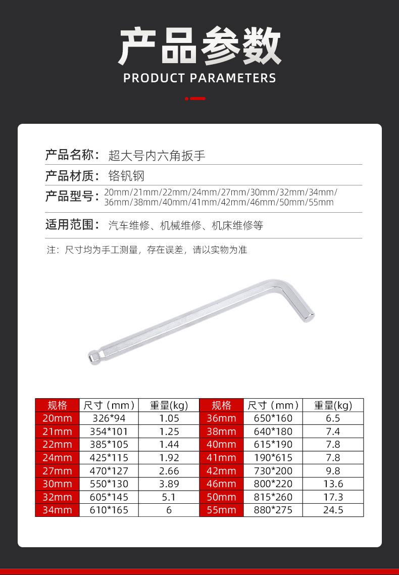 제조업체 도매 초대형 육각 렌치 L 자형 볼 헤드 육각 렌치 수리 도구 다중 사양 육각 렌치