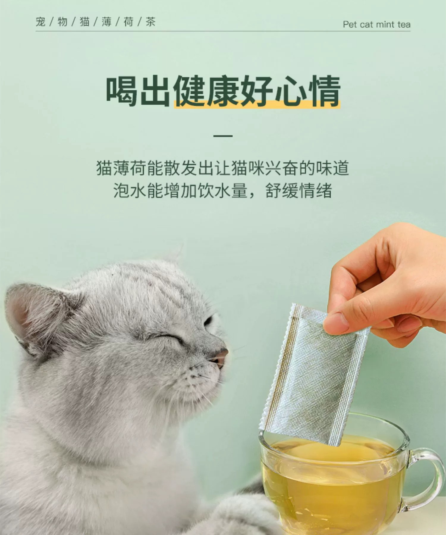 애완동물 고양이 민트 차는 고양이가 물을 마시고 소화를 돕고 고양이의 기분을 조절하는 데 도움이 됩니다. 천연 고양이 민트는 고양이가 물을 마시도록 촉진합니다.