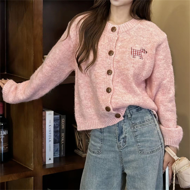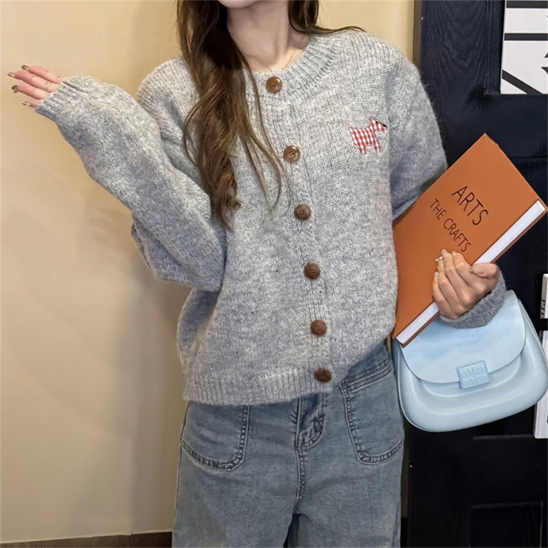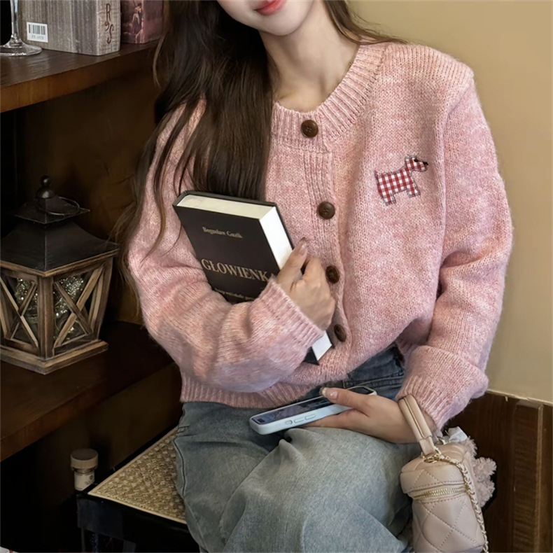 여성을위한 한국 스타일 강아지 패치 달콤하고 부드러운 스웨터 2025 가을, 겨울 새로운 느슨한 게으른 스타일 패션 니트 카디건스토어 가기