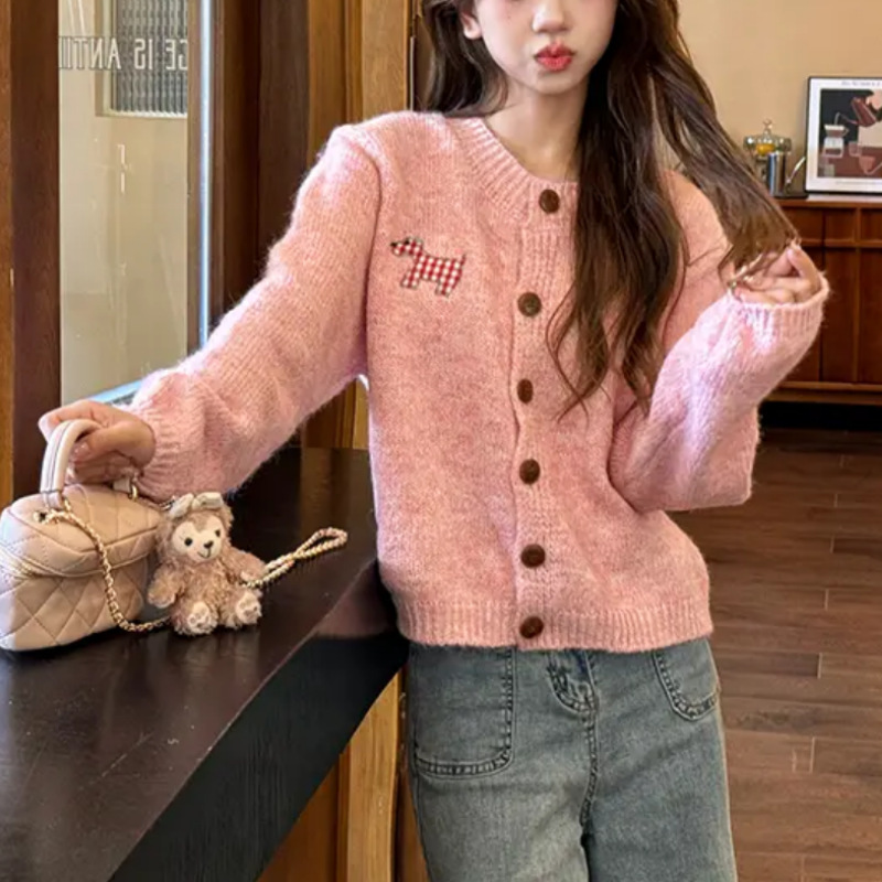 여성을위한 한국 스타일 강아지 패치 달콤하고 부드러운 스웨터 2025 가을, 겨울 새로운 느슨한 게으른 스타일 패션 니트 카디건