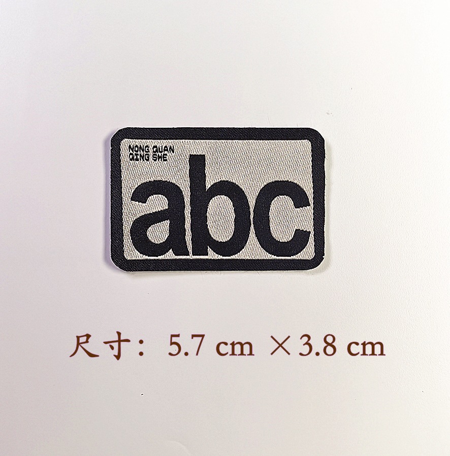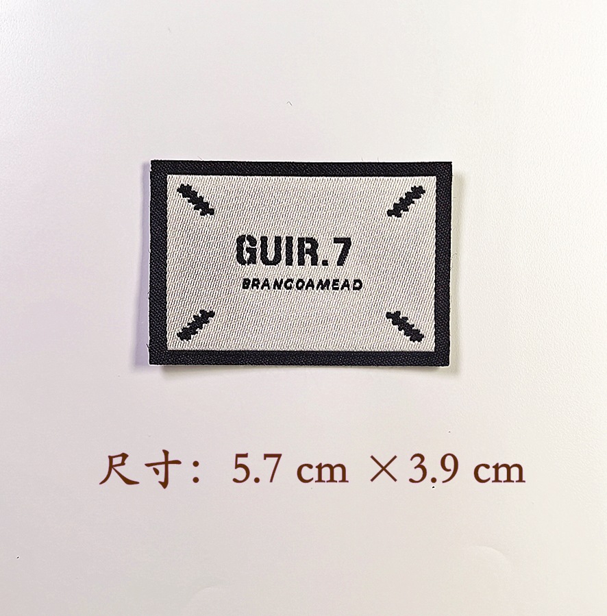 클래식 블랙 프레임 베이지색 원단 라벨 패브릭 스티커 제조업체 의류 신발 양말 가방 직조 라벨 원단 부자재 고밀도 트렌디