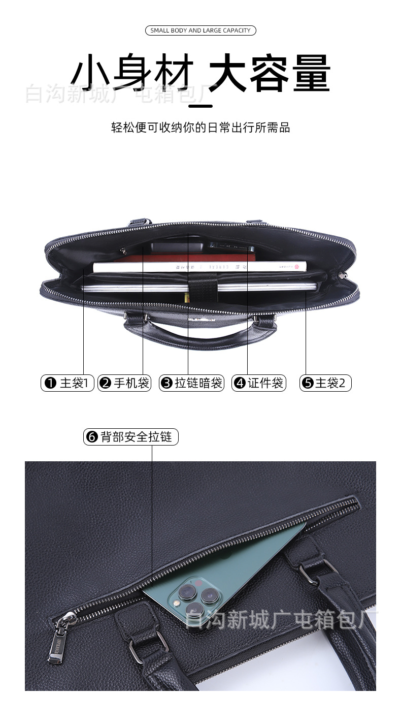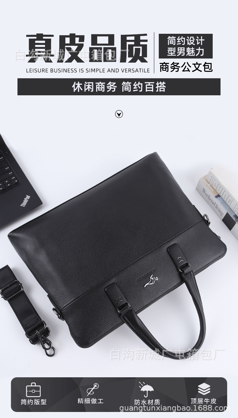 비즈니스 가죽 핸드백 대용량 남성용 소가죽 가방 통근 및 사무실 간단한 가죽 컴퓨터 문서