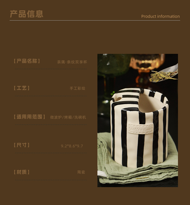 중세 줄무늬 손으로 그린 머그잔 크리 에이 티브 세라믹 더블 컵 사무실 커피 컵 애프터눈 티 아침 식사 워터 컵