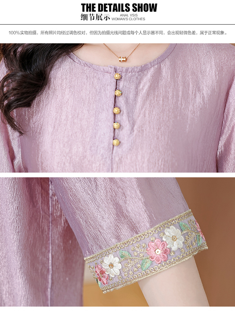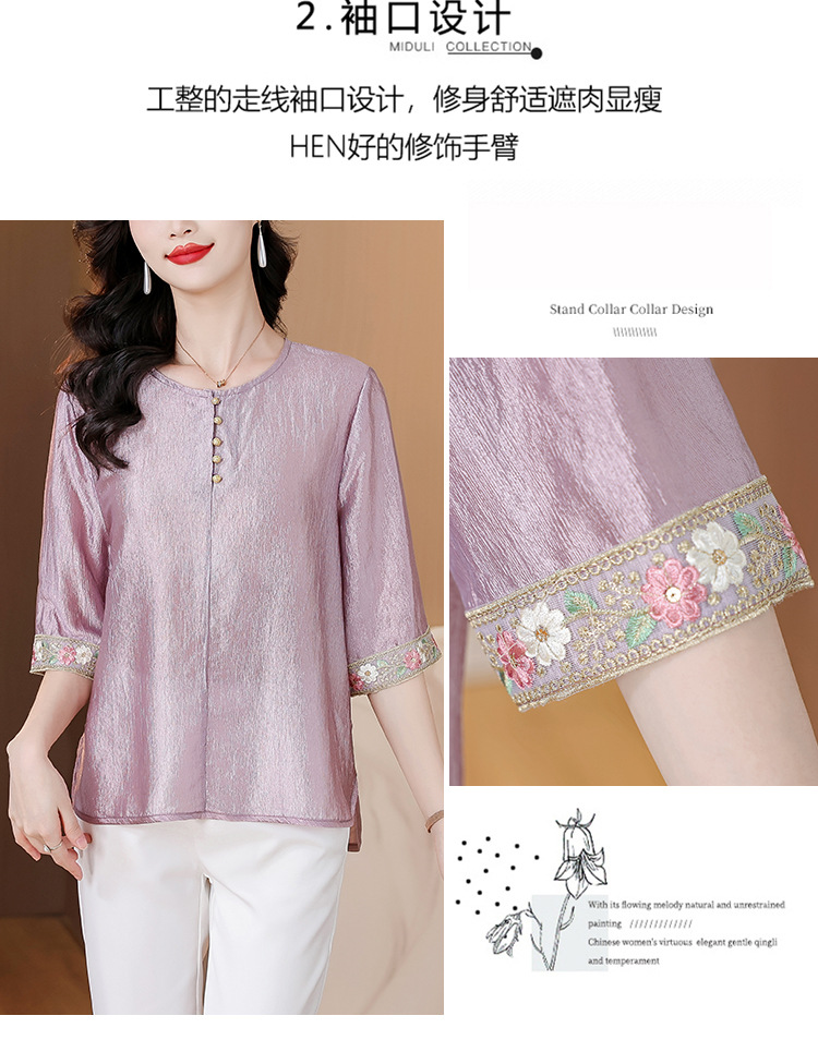 여성을위한 새로운 중국 스타일 수 놓은 레이스 쉬폰 셔츠 2025 여름 새로운 캐주얼 기질 연령 감소 숙녀 라운드 넥 셔츠 여름