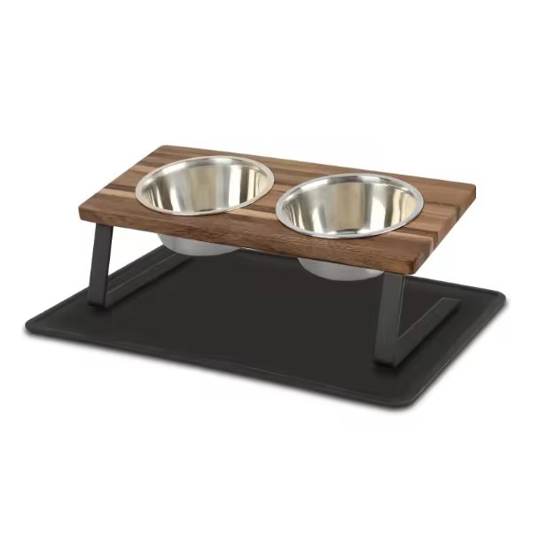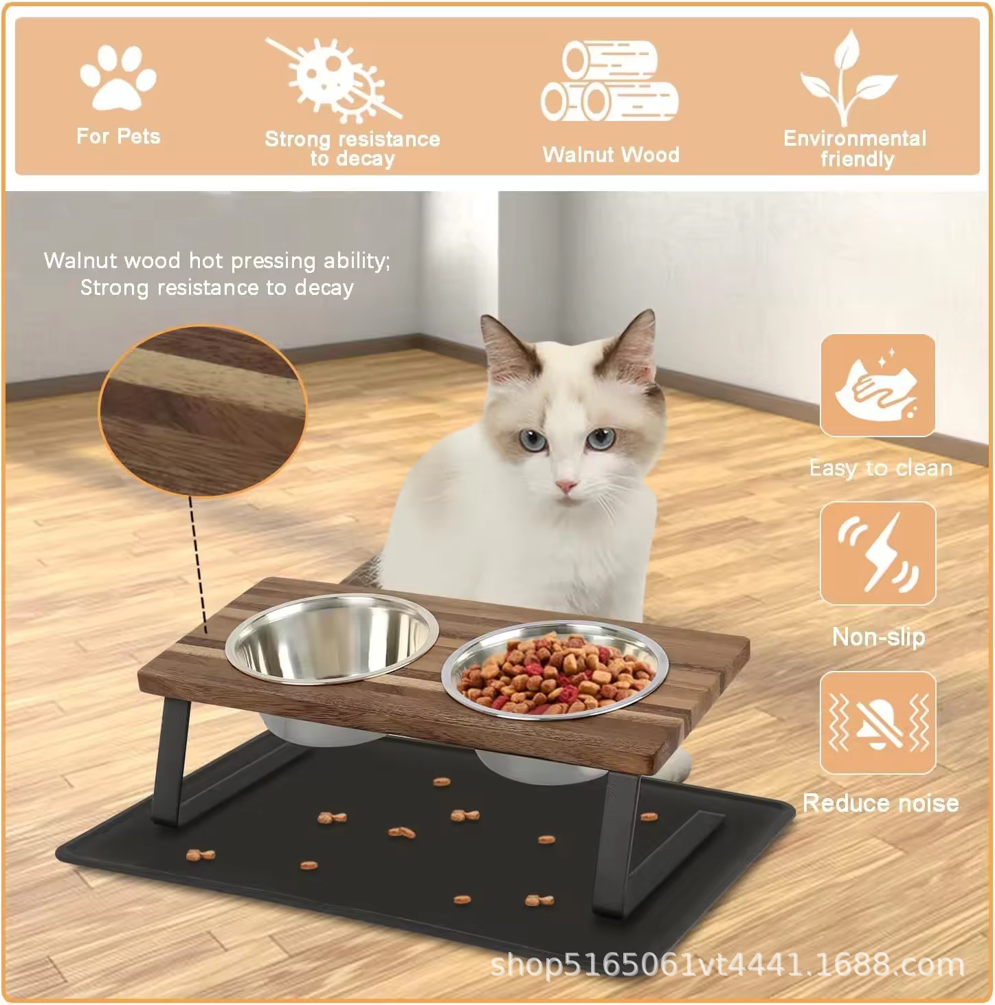 간단한 나무 고양이 그릇 랙 애완 동물 피더 바닥 스탠딩 더블 그릇 애완 동물 그릇 랙 나무 철 개 그릇 높이 랙