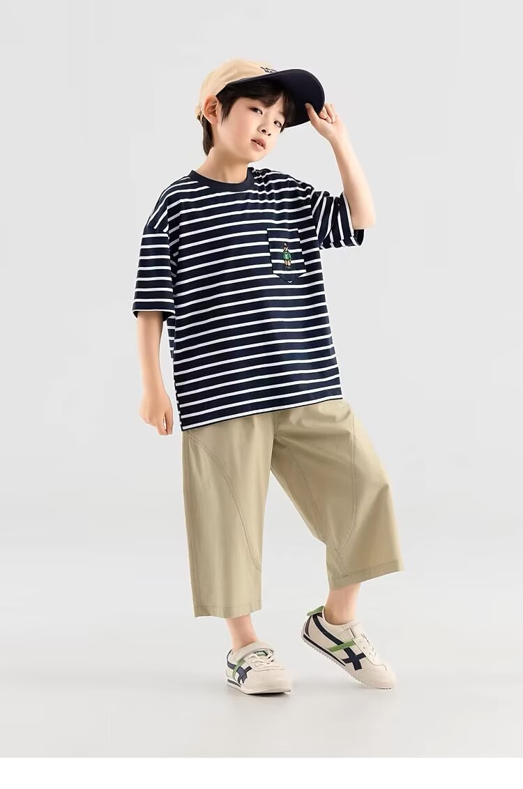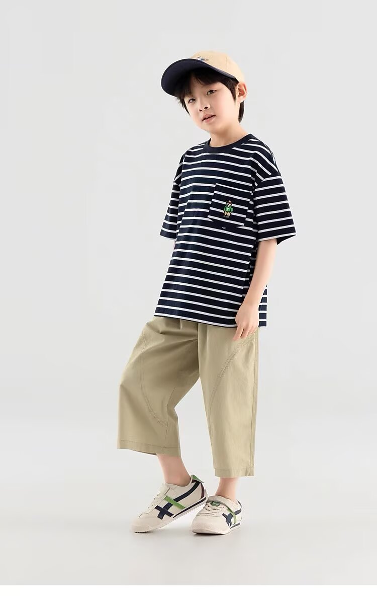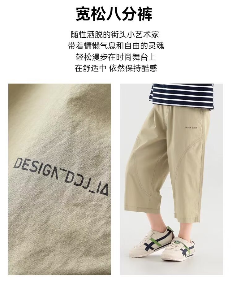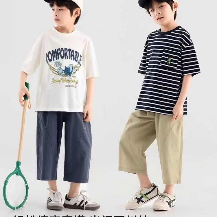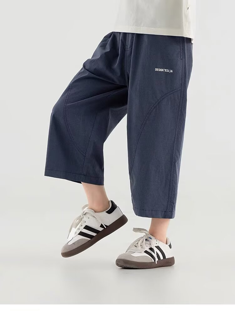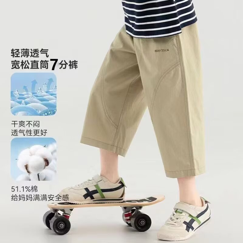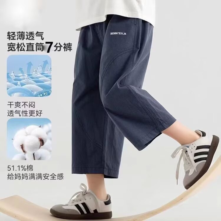 소년 반바지 2025 새로운 여름 어린이 스트레이트 잘 생긴 7부 바지 무릎 위 얇은 소년 텐셀 코튼 바지스토어 가기