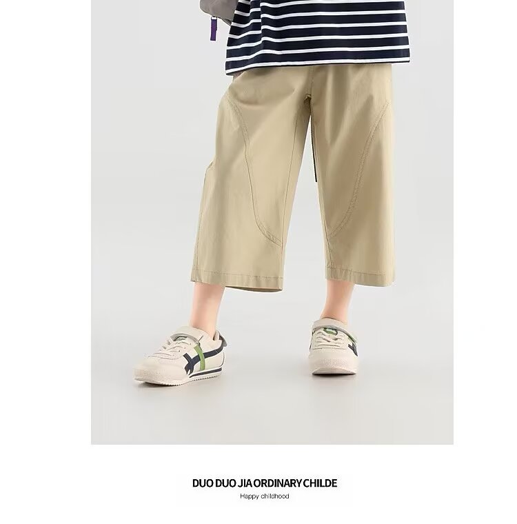 소년 반바지 2025 새로운 여름 어린이 스트레이트 잘 생긴 7부 바지 무릎 위 얇은 소년 텐셀 코튼 바지