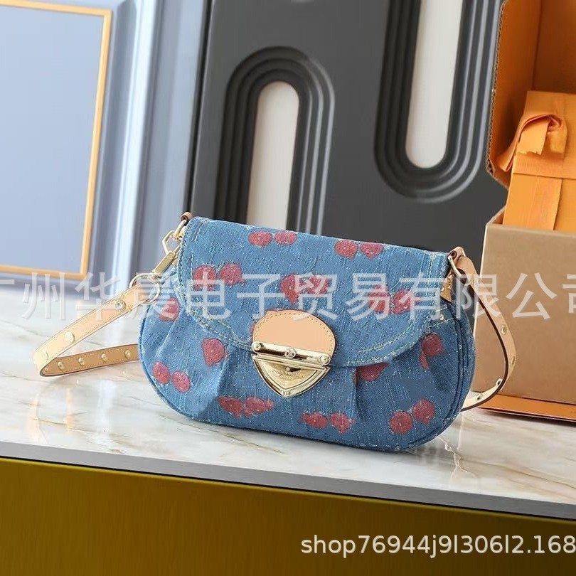 새로운 고급 워싱 데님 데님 체리 만두 돼지 가방 겨드랑이 여성용 가방 복고풍 싱글 숄더 크로스 바디 백 트렌디