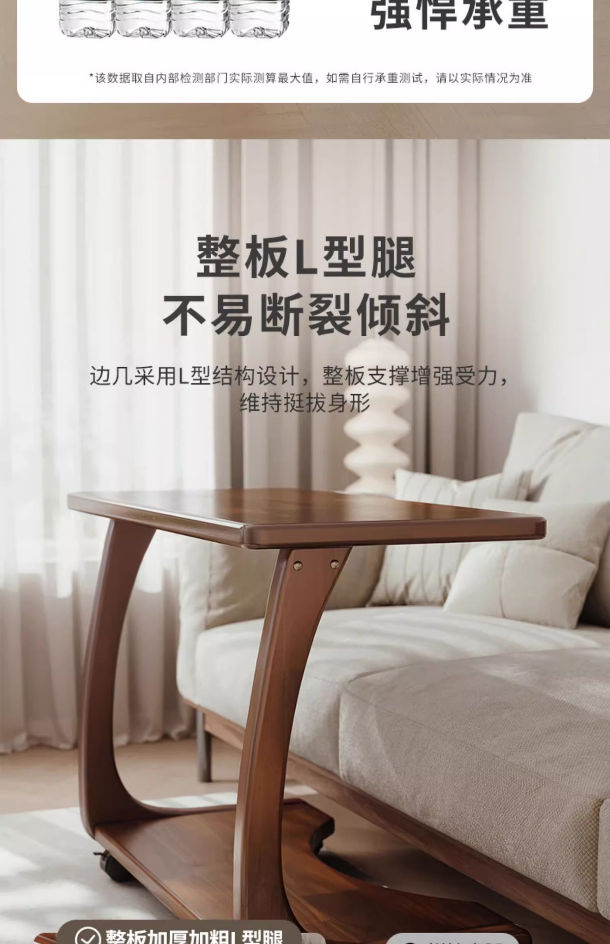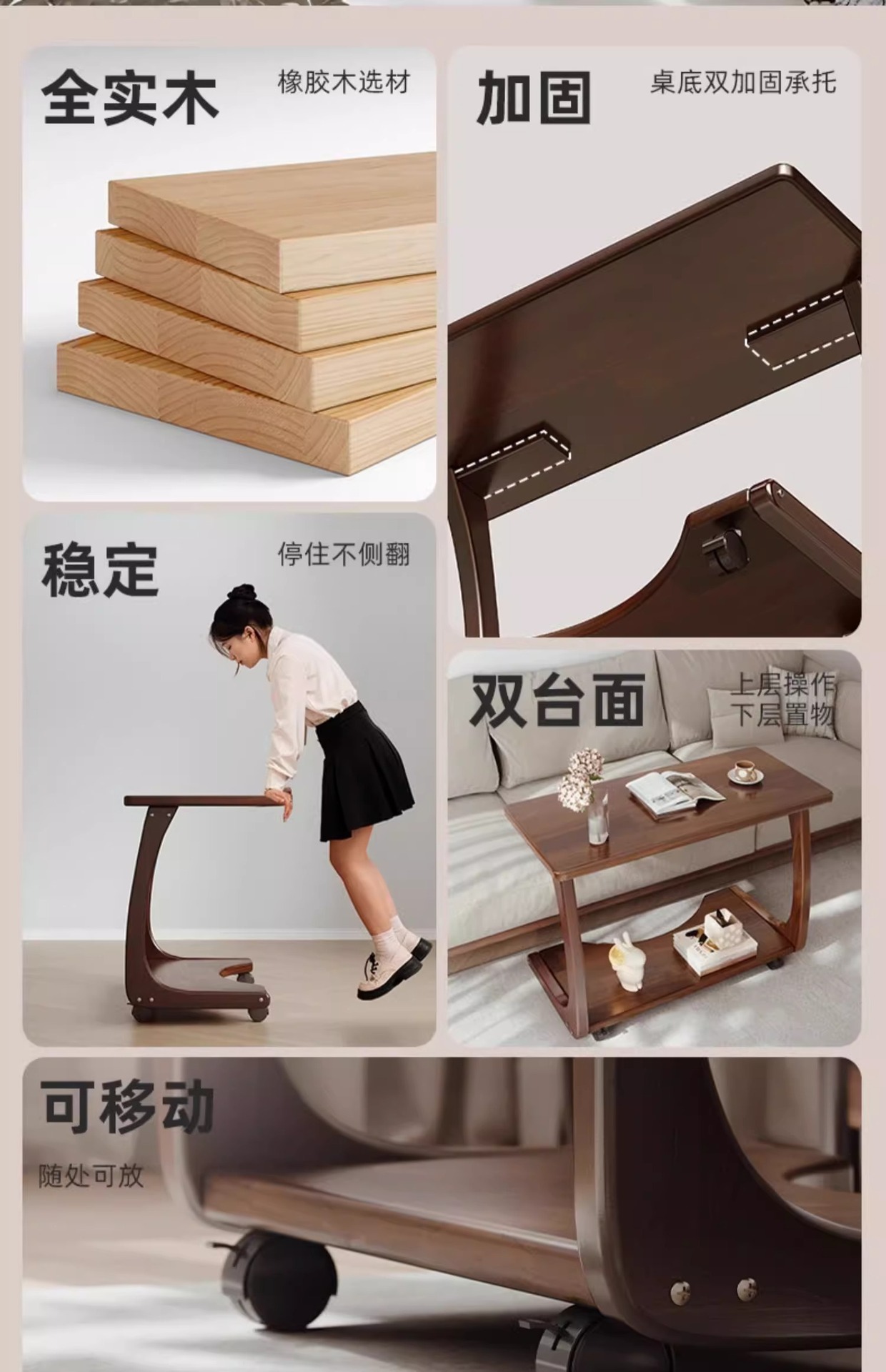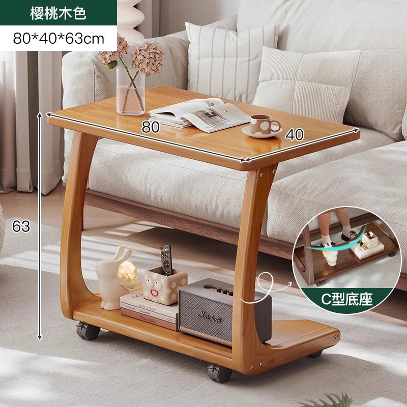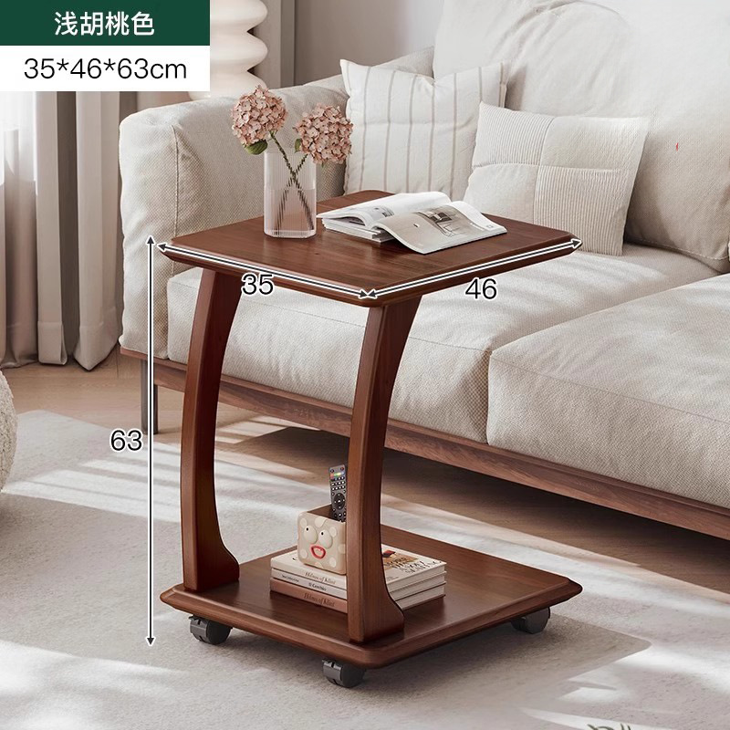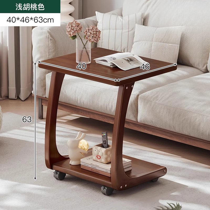 단단한 나무 소파 사이드 테이블 이동식 사이드 테이블 침대 옆 바퀴가 달린 사이드 캐비닛 거실 홈 소형 아파트 C 자형 작은 커피 테이블