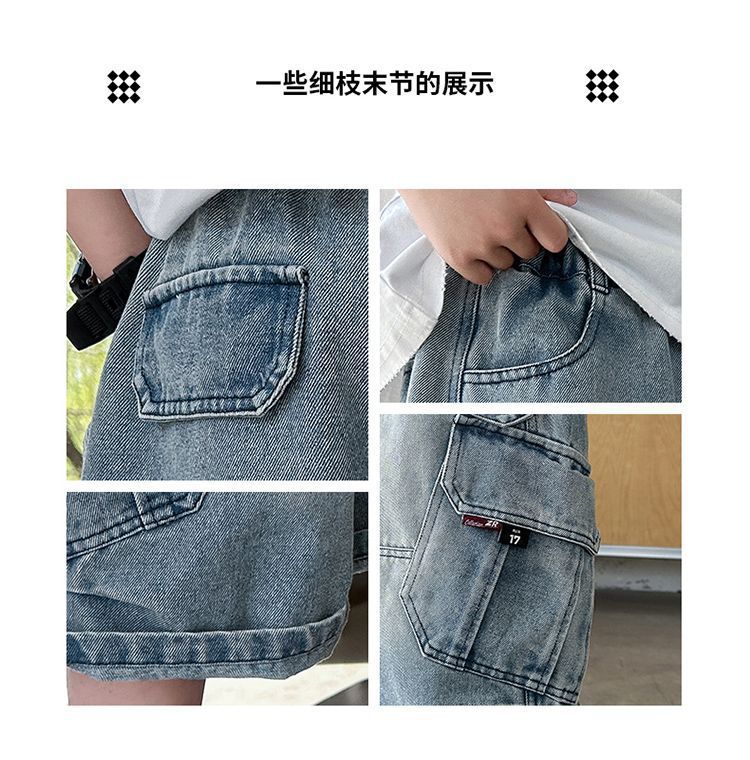 2025 신상 아동 데님 반바지 여름 얇은 중대형 아동 한국식 5부 바지 소년 스트레이트 미드 팬츠 패션
