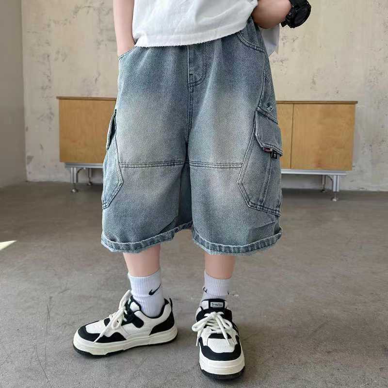2025 신상 아동 데님 반바지 여름 얇은 중대형 아동 한국식 5부 바지 소년 스트레이트 미드 팬츠 패션스토어 가기