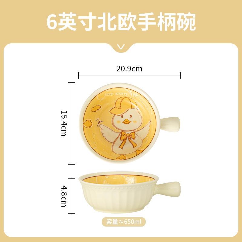 손잡이가 달린 귀여운 세라믹 인스턴트 국수 그릇, 가정용 개인 식기, 과일 샐러드 그릇, 수프 그릇, 접시, 손잡이 그릇