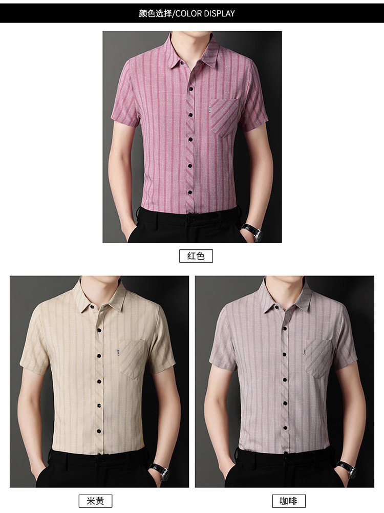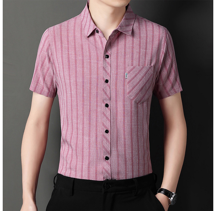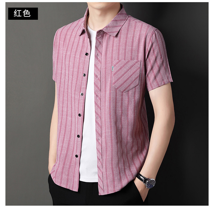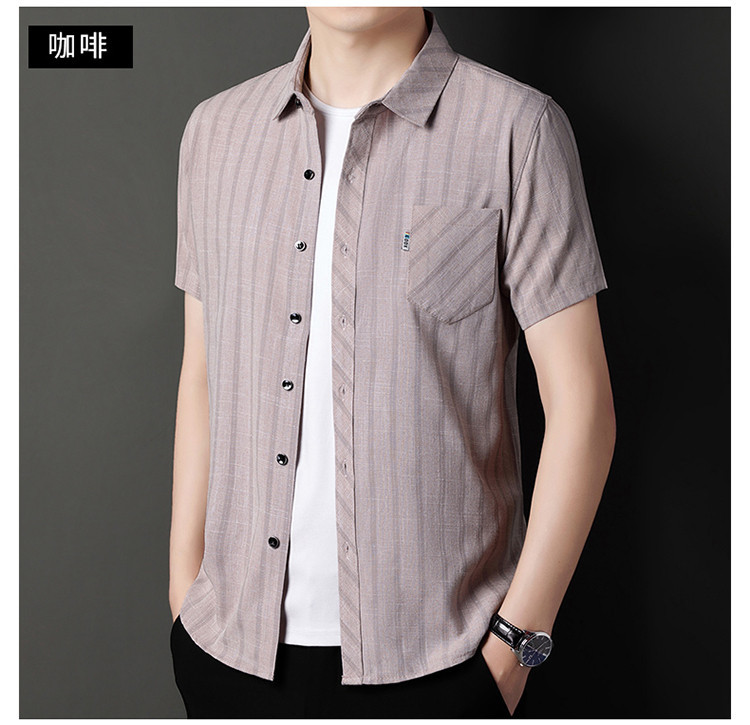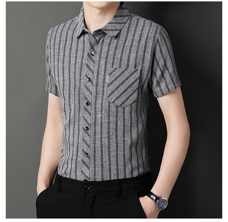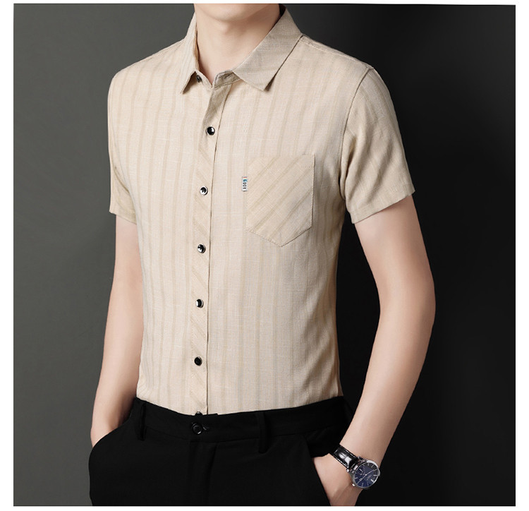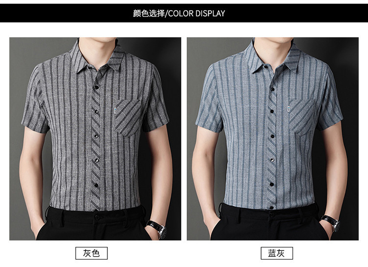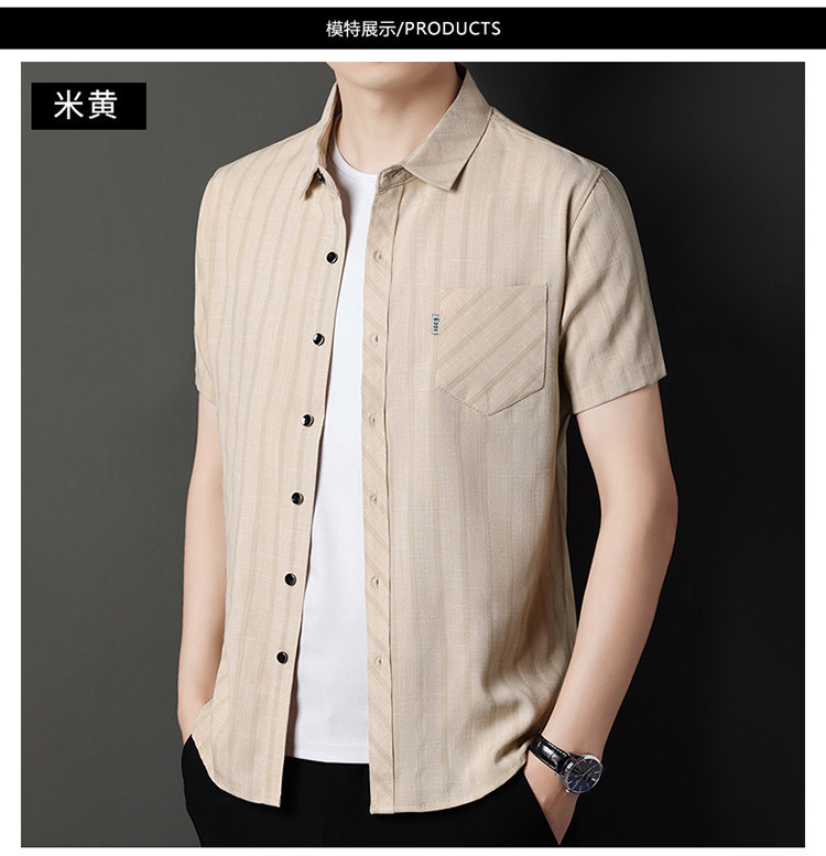 남성 셔츠 반팔 세로 줄무늬 얼음 실크 면 및 린넨 여름 신작 캐주얼 셔츠 남성 여름 크로스 보더 드롭 배송