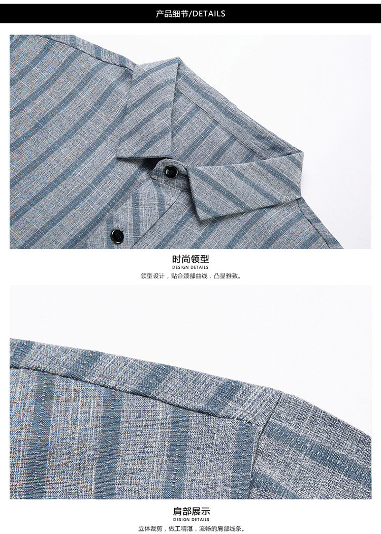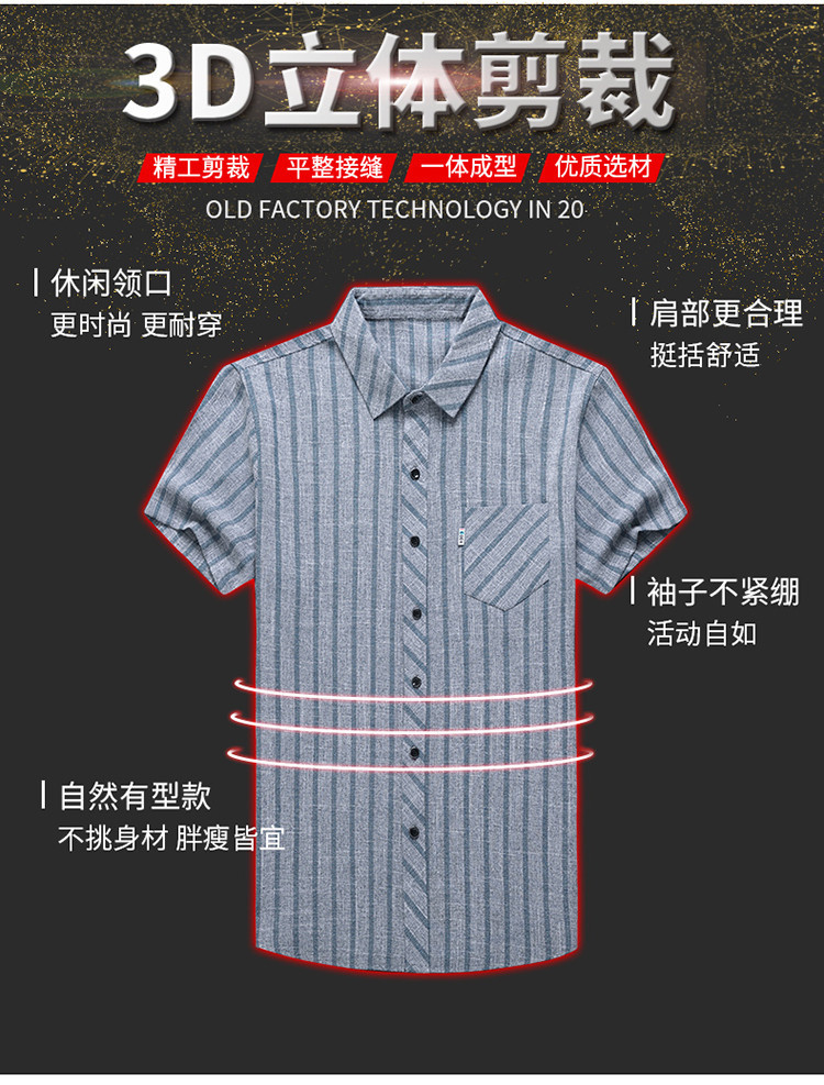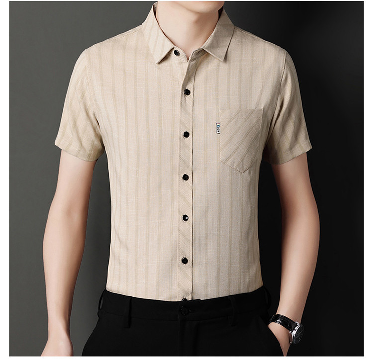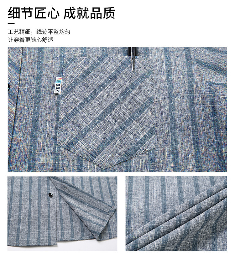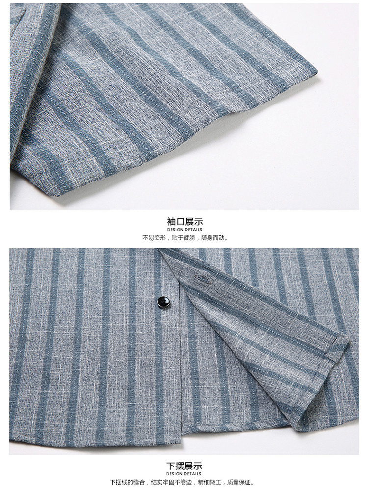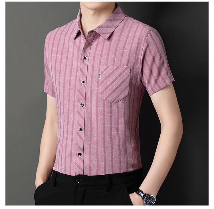 남성 셔츠 반팔 세로 줄무늬 얼음 실크 면 및 린넨 여름 신작 캐주얼 셔츠 남성 여름 크로스 보더 드롭 배송