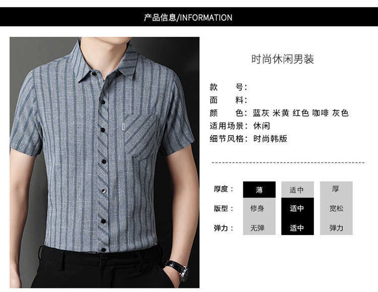 남성 셔츠 반팔 세로 줄무늬 얼음 실크 면 및 린넨 여름 신작 캐주얼 셔츠 남성 여름 크로스 보더 드롭 배송스토어 가기