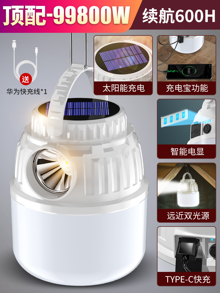 태양광 캠핑 조명, 야시장 매점 조명, 정전 비상등, 충전식, 배터리 수명이 긴 야외 텐트 조명, 걸이 조명