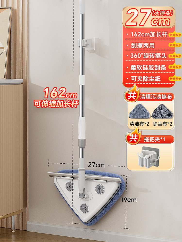• 162cm 텔레스코픽 폴 [27cm 청소 헤드 + 청소용 천*2 + 벽걸이 클립] 이중 목적 스크레이퍼/먼지 종이를 고정할 수 있음