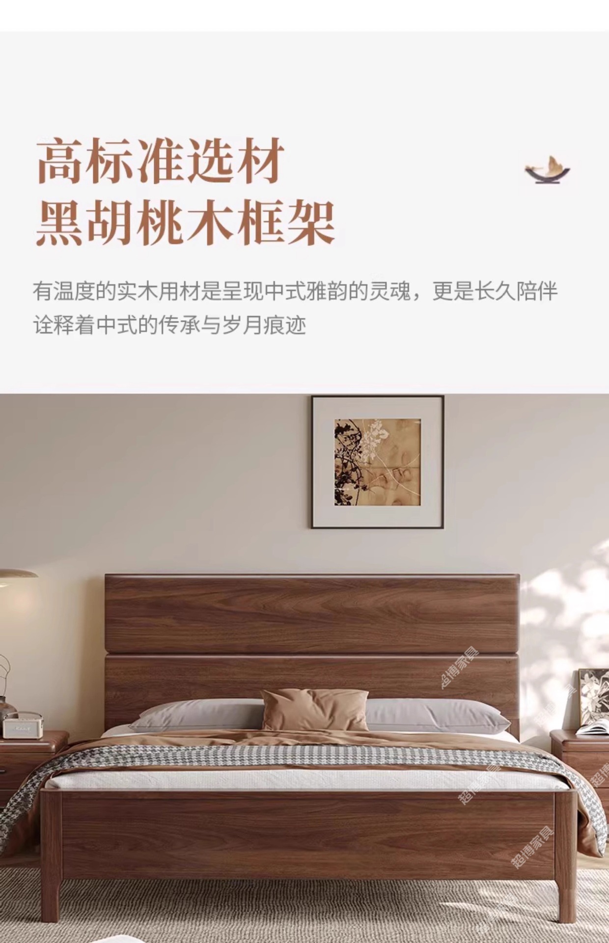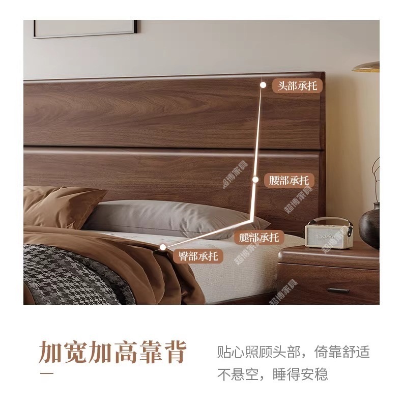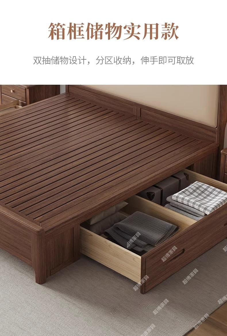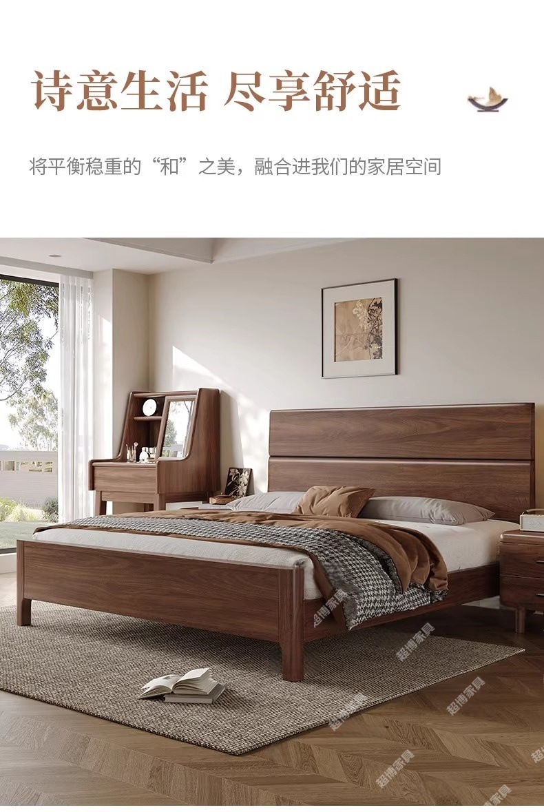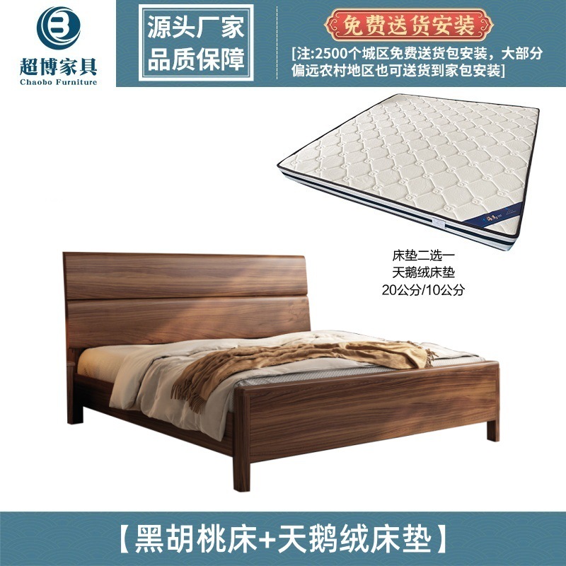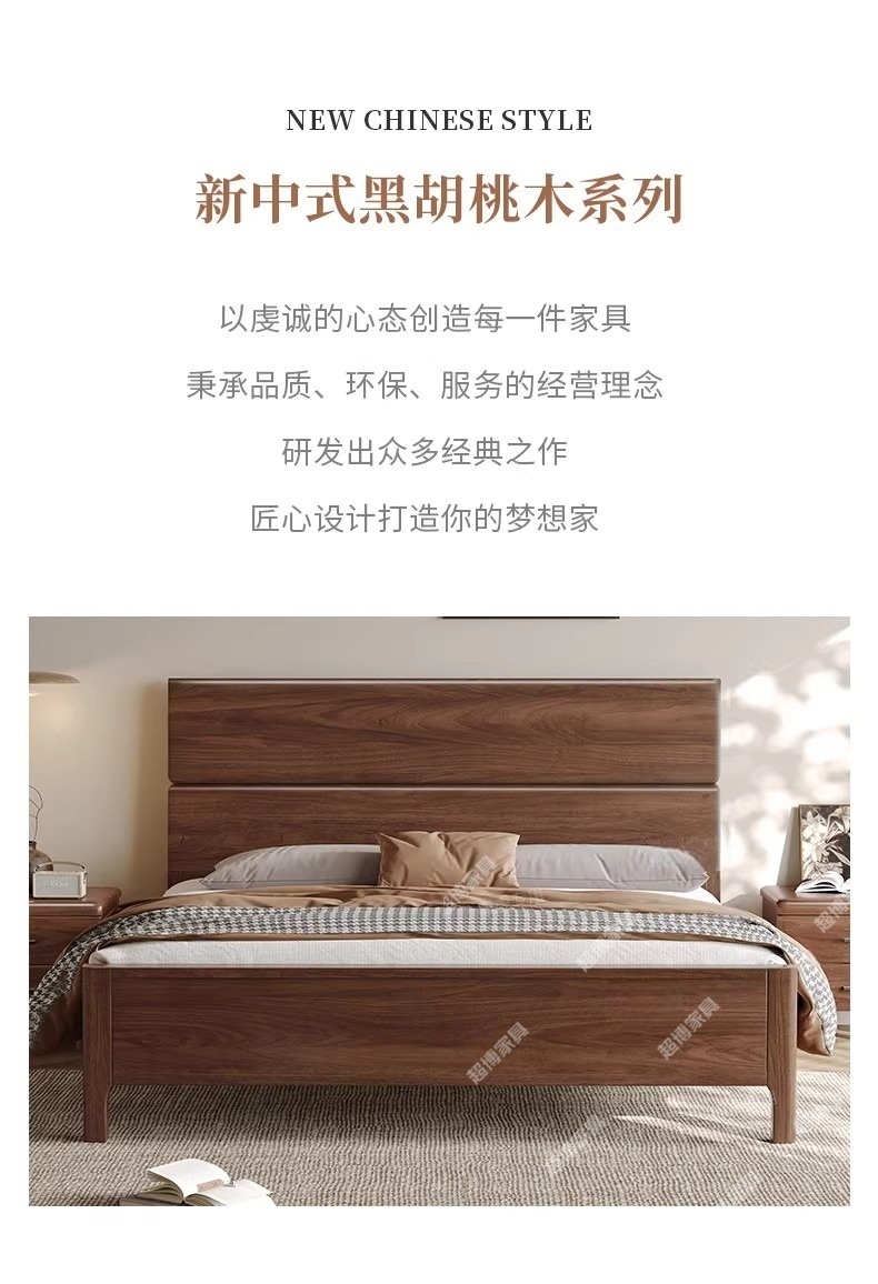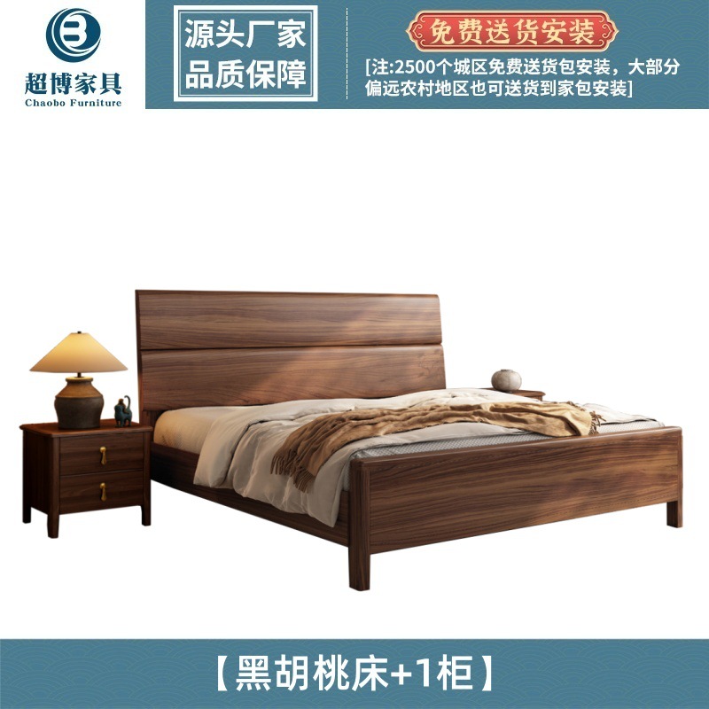 새로운 중국 스타일 검은 호두 나무 전체 단단한 나무 침대 1.8m 마스터 침실 라이트 럭셔리 대형 침대 웨딩 침대 호텔 B & B 1.5m 더블스토어 가기