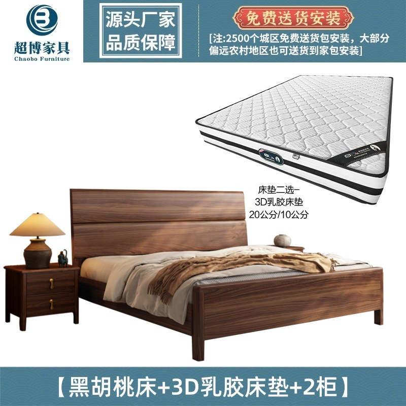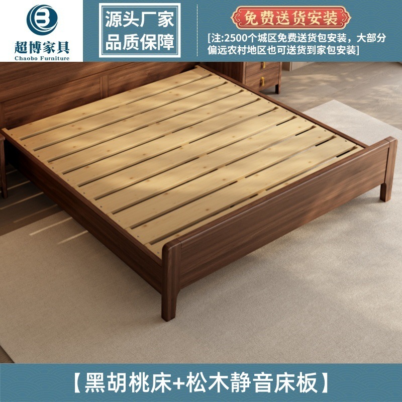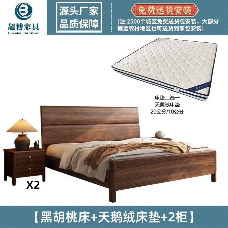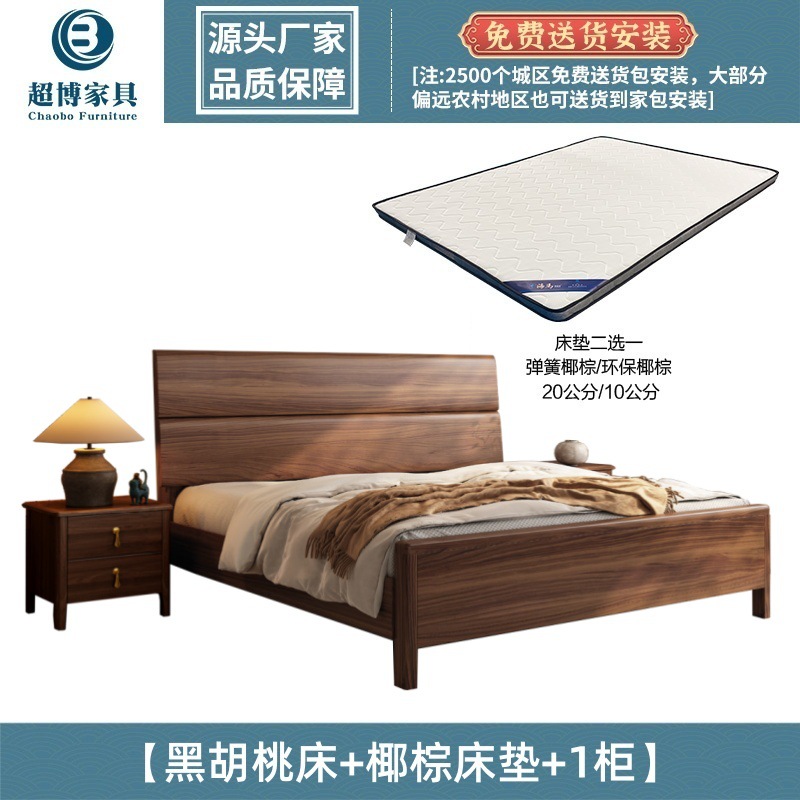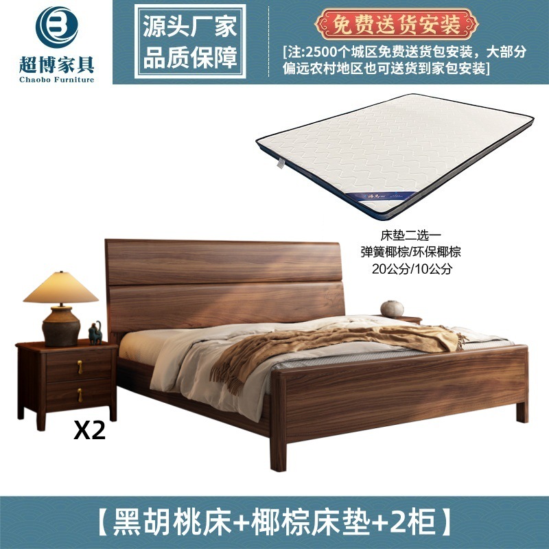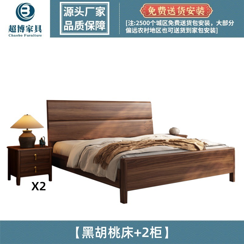 새로운 중국 스타일 검은 호두 나무 전체 단단한 나무 침대 1.8m 마스터 침실 라이트 럭셔리 대형 침대 웨딩 침대 호텔 B & B 1.5m 더블