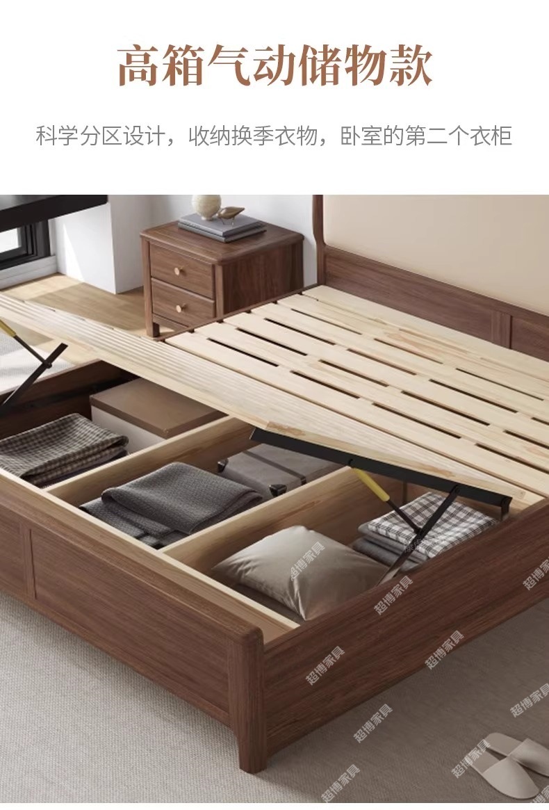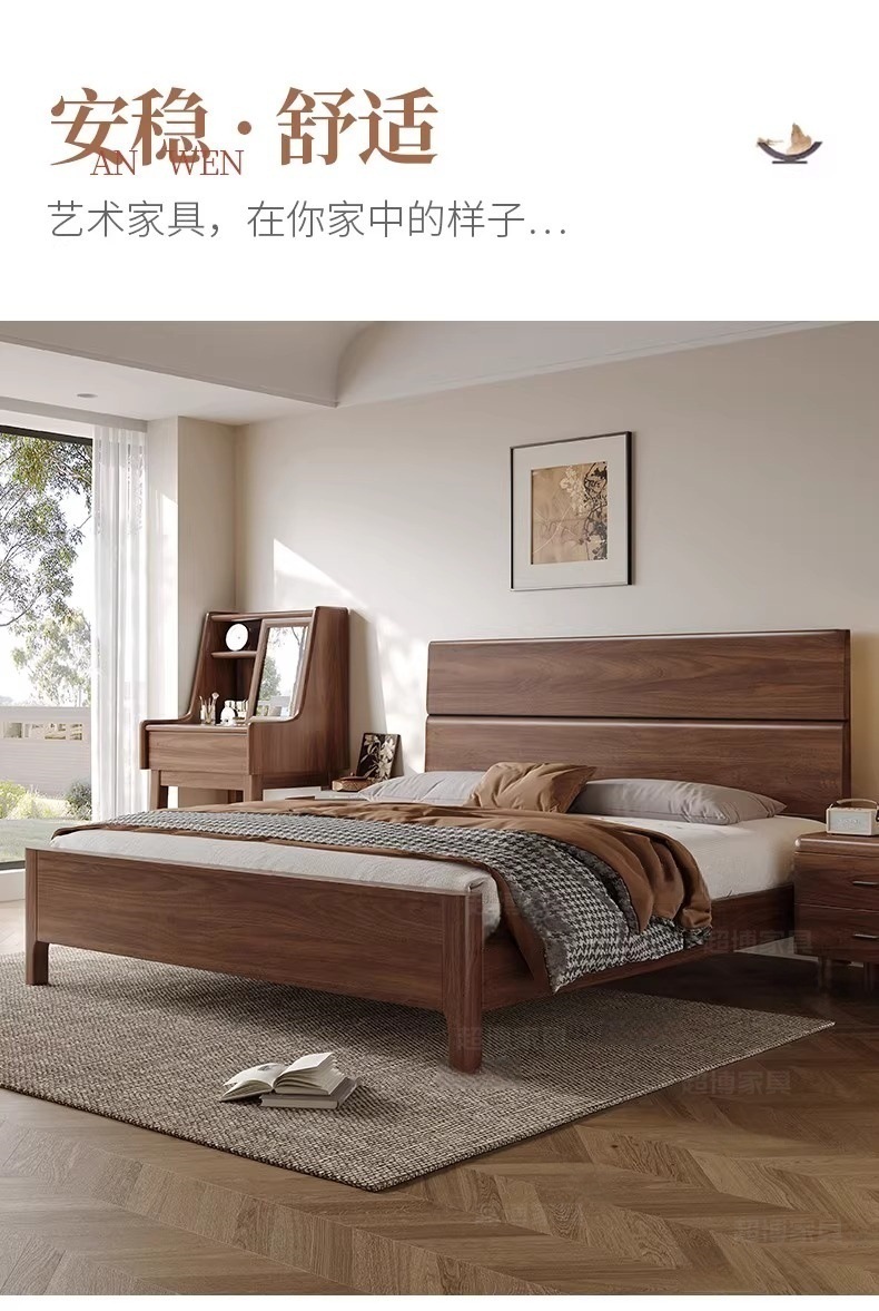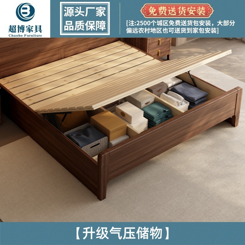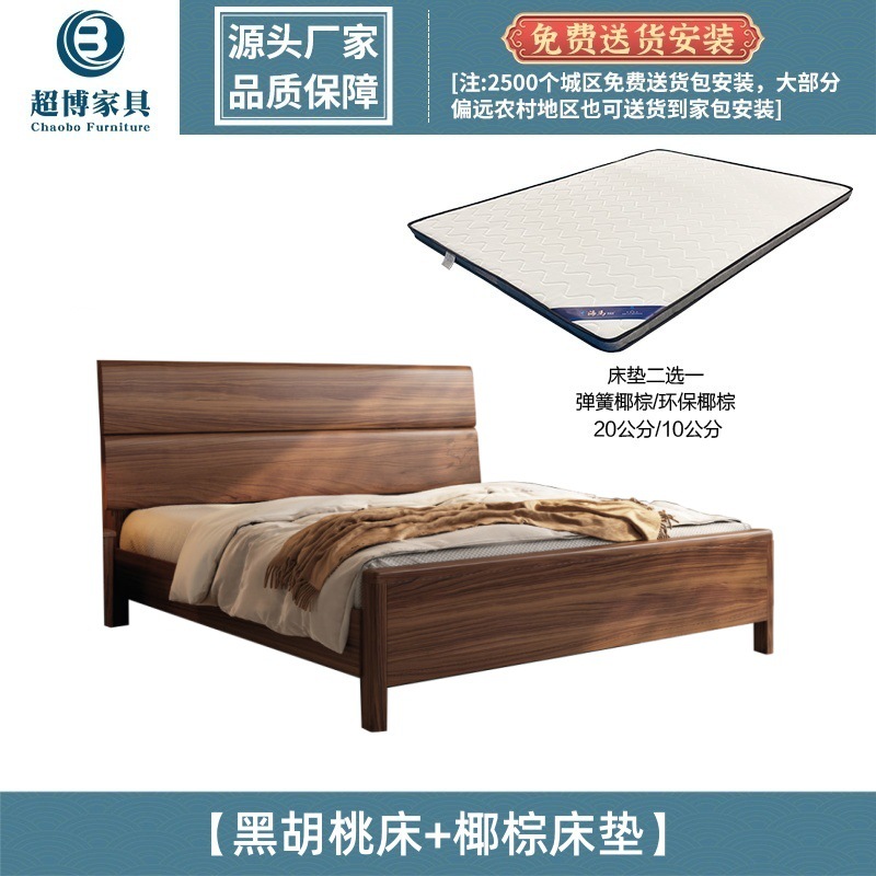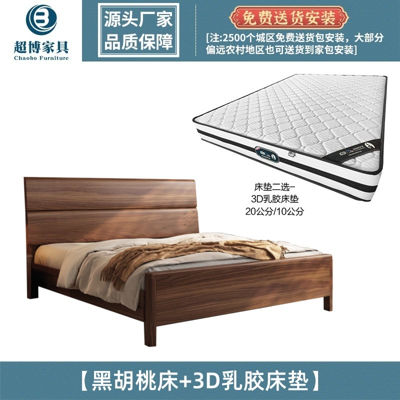 새로운 중국 스타일 검은 호두 나무 전체 단단한 나무 침대 1.8m 마스터 침실 라이트 럭셔리 대형 침대 웨딩 침대 호텔 B & B 1.5m 더블