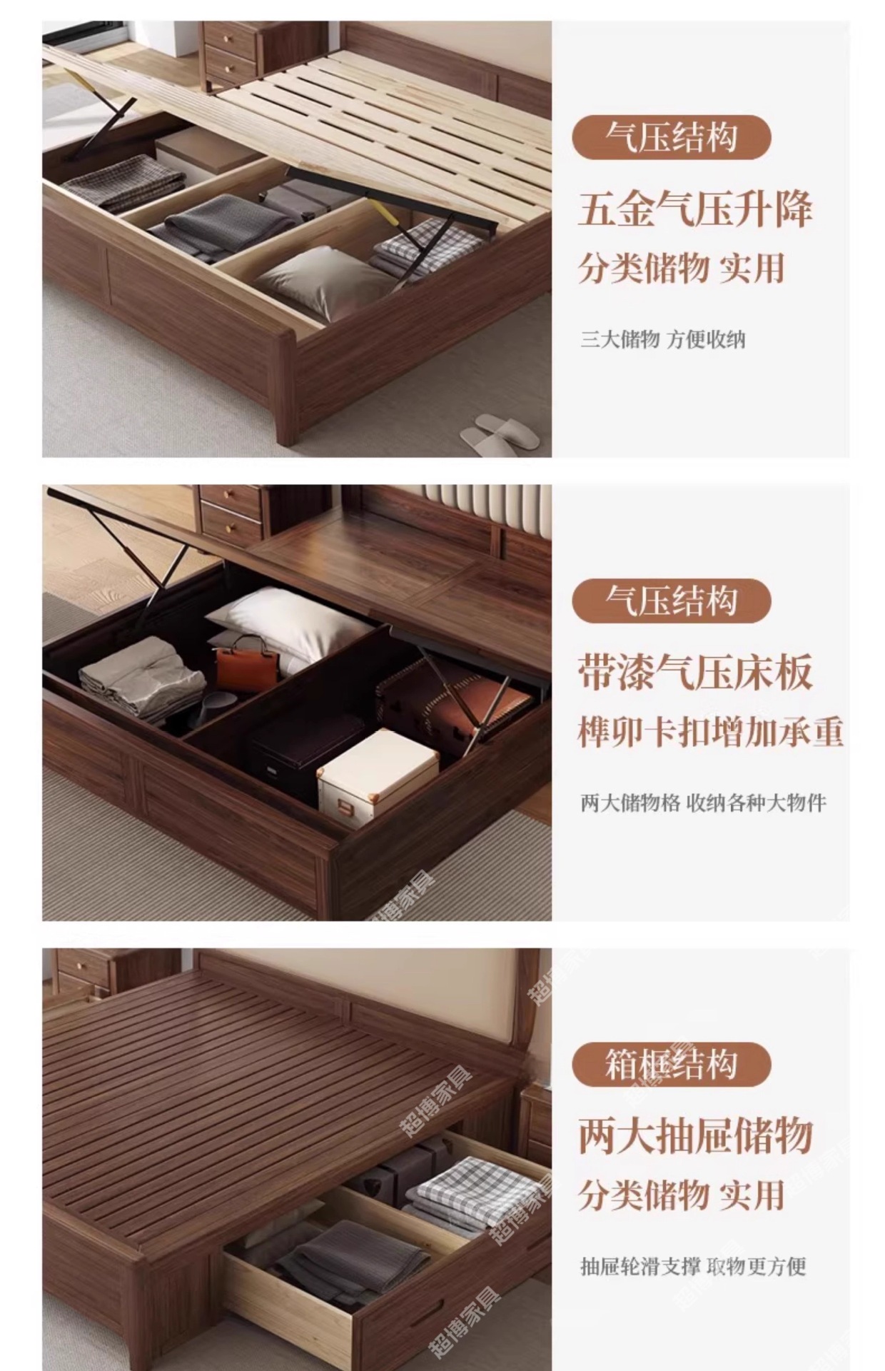 • 블랙 월넛 침대 + 3D 라텍스 매트리스 + 캐비닛 2개