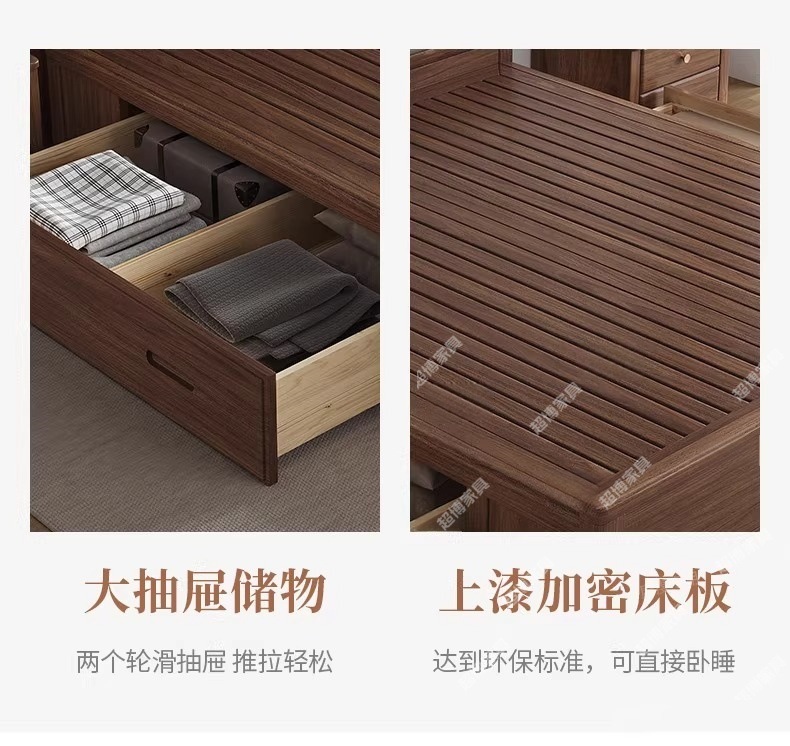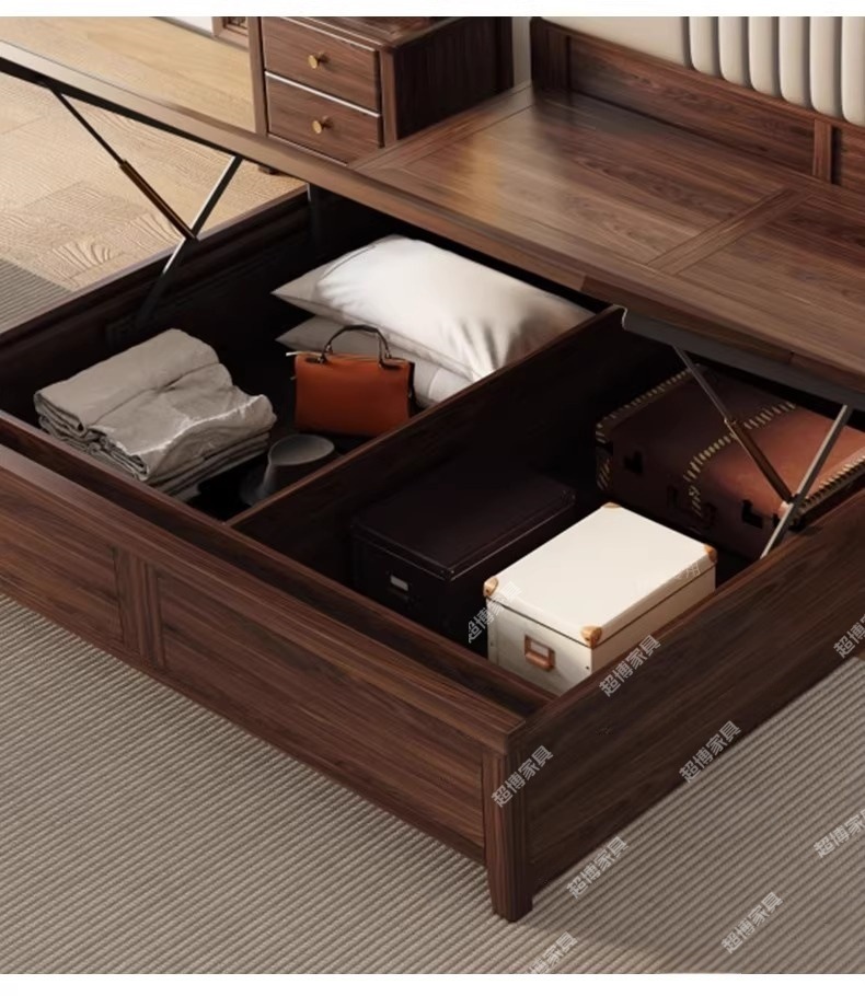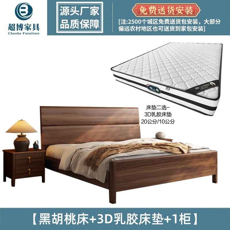 • 블랙 월넛 침대 + 3D 라텍스 매트리스 + 캐비닛 1개