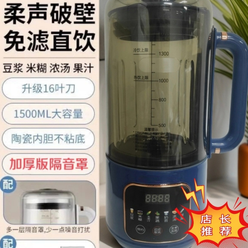 全自动破壁机半静音加热豆浆机精准1.5L大容量高颜值智能触控无刷